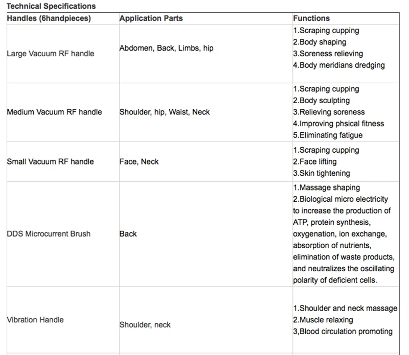 Благодаря сочетанию вакуумного отрицательного давления и фотоэлектричества, гладкий лимфатический канал, ускоряет обмен веществ в организме, кровообращение, ускоряет метаболизм токсинов и поглощение питательных веществ, снимает боль, здоровье и здравоохранение, таким образом, играют цель удаления кислоты и коррекции кислоты. Высокочастотная радиочастота может непосредственно достигать жирового тела, Сделайте адипоцит тканью в быстром и активном состоянии, Произведите тепловую энергию трения тепла тела клеток, сделайте местное повышение температуры, через пот, с вакуумным всасыванием, сильный массаж через отрицательное давление. Прямая обработка толстым жиром, эффект очевиден. Функции 1. Выскабливание; 2. Формирование тела; 3. Облегчение скорлупы; 4. Тела меридианов дноуглубления.