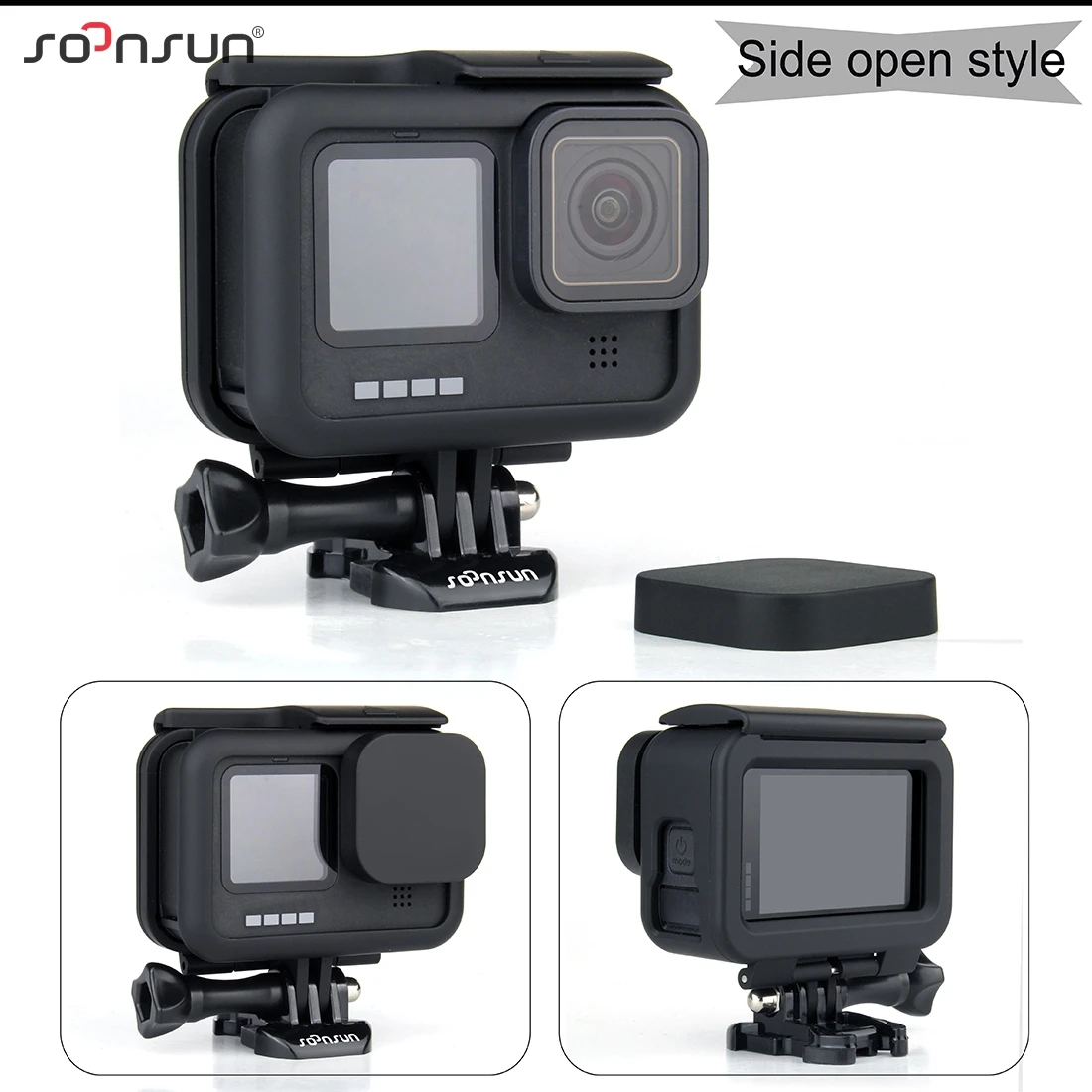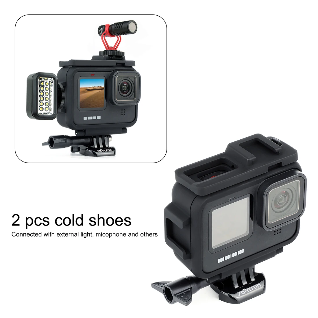 SOONSUN защитная рамка Корпус корпус крышка с двойной холодной башмак крепление + крышка объектива для GoPro Hero 9 черный Go Pro аксессуар