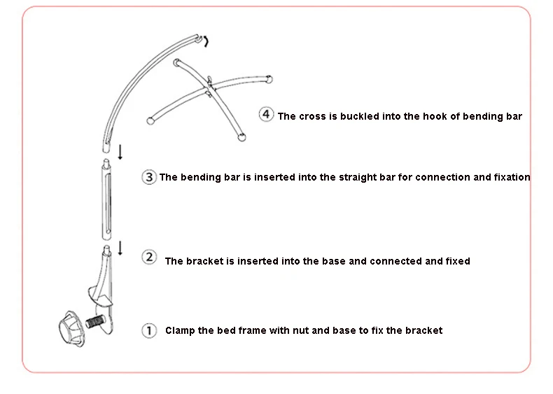 1. Прижмите раму кровати гайкой и основанием для фиксации кронштейна