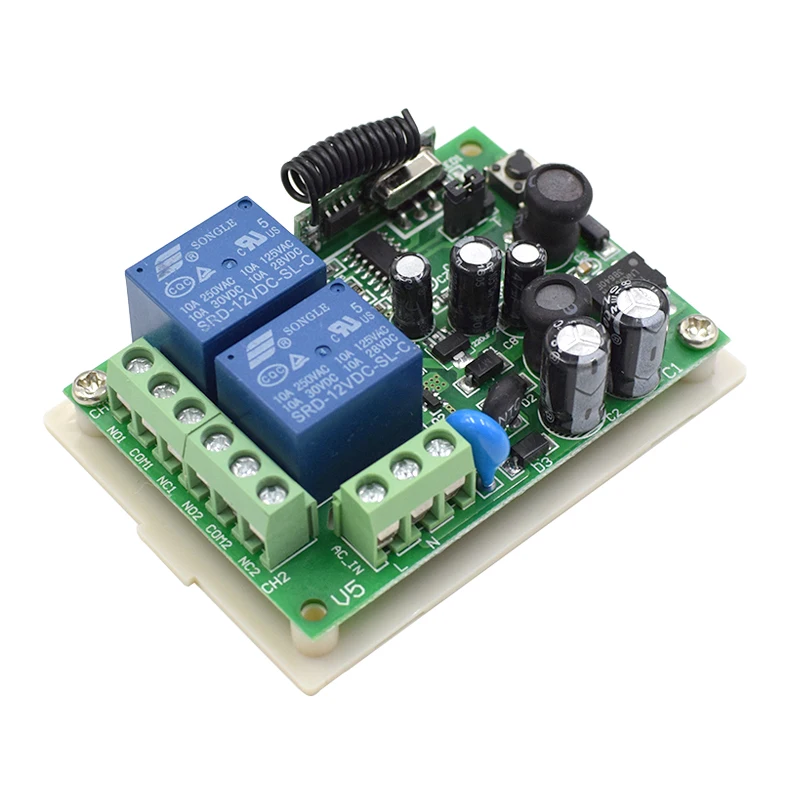 Вы можете сочетать пульт дистанционного управления с модулем переключателя приемника в 3 режимах. Удаленный режим 1: Мгновенный режим Нажмите и удерживайте одну кнопку-> on; Отпустите кнопку-> OFF Подробности: Нажмите одну кнопку (на пульте дистанционного управления), реле (на плате приемника) Поверните, чтобы включить; Отпустите кнопку, реле Поверните, чтобы выключить. Режим дистанционного управления 2: режим переключения Нажмите одну кнопку-> ВКЛ; Нажмите одну и ту же кнопку еще раз-> ВЫКЛ Подробности: Нажмите одну кнопку (на пульте дистанционного управления) один раз, реле (на плате приемника) Поверните, чтобы включить; Нажмите эту же кнопку снова, реле Поверните, чтобы выключить. Режим дистанционного управления 3: режим блокировки Нажмите кнопку «A»-> ON; Нажмите кнопку «B»-> OFF (в то же время на другом канале) Подробности: Нажмите одну кнопку (на пульте дистанционного управления) один раз, реле (на плате приемника) Поверните, чтобы включить; Нажмите на другую кнопку, чтобы выключить реле (в то же время включить другой канал).