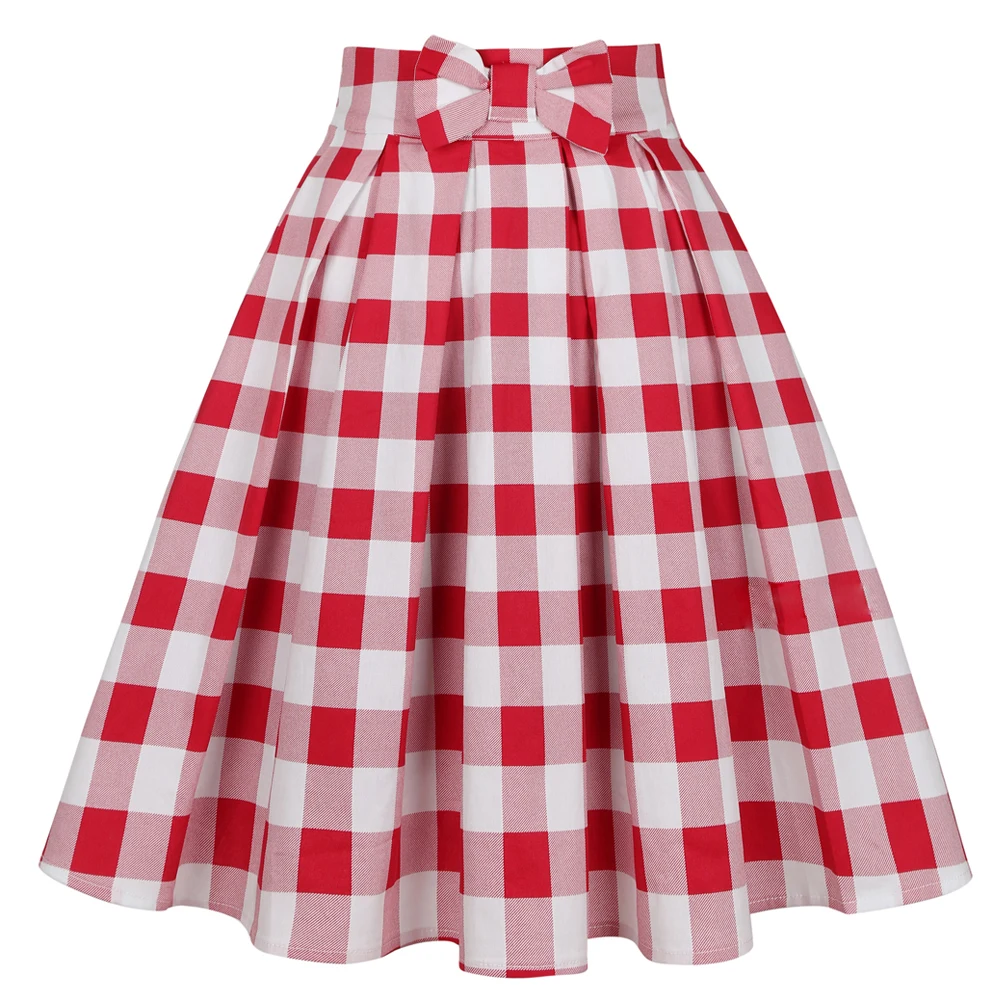 Red Blue Green Plaid High Waist Midi Skirts SD0012 Checkered Plus Size Women's Vintage Retro 50s 60s Cotton Plaid Skirts SD0012
