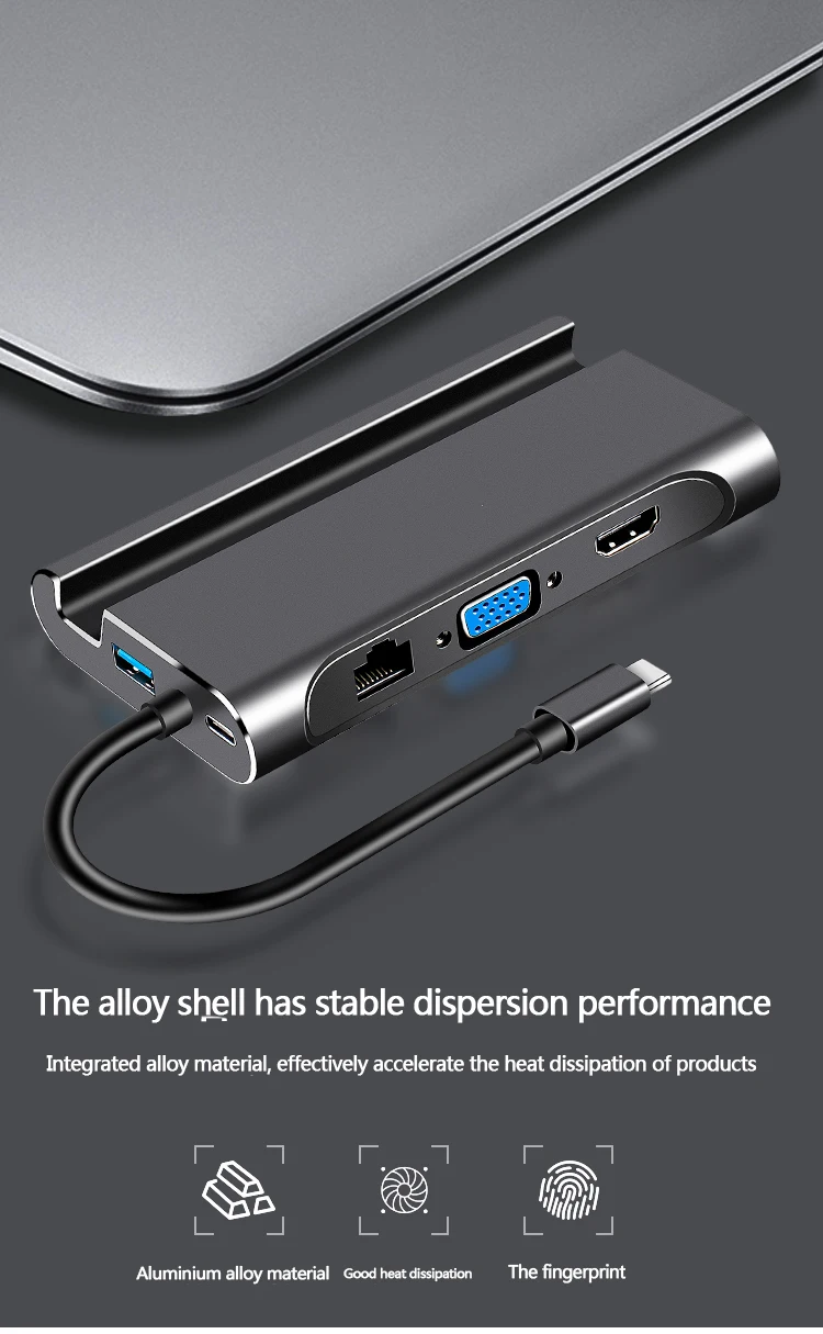 (H) 7-в-1 3 * USB3.0 + PD + + * HDMI-compatible4k + 1 * Rj45 1000M + VGA(1080p @ 60)