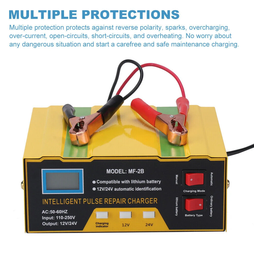 Он совместим со всеми видами свинцово-кислотных аккумуляторов 12 В/24 В, водяных аккумуляторов, батарей без обслуживания, сухих аккумуляторов. И т. Д. (батарея VELA, гелевая батарея, OPZN батарея