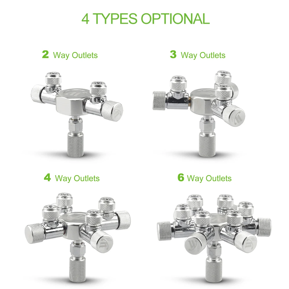 Для нескольких аквариумов:С помощью этого сплиттера вы можете легко подключить до двух или более диффузоров CO2 из одного цилиндра CO2. Каждый выход оснащен индивидуальным игольчатым клапаном, позволяющим точно регулировать поток CO2, настраивается на каждые 3 секунды 1 пузырь.