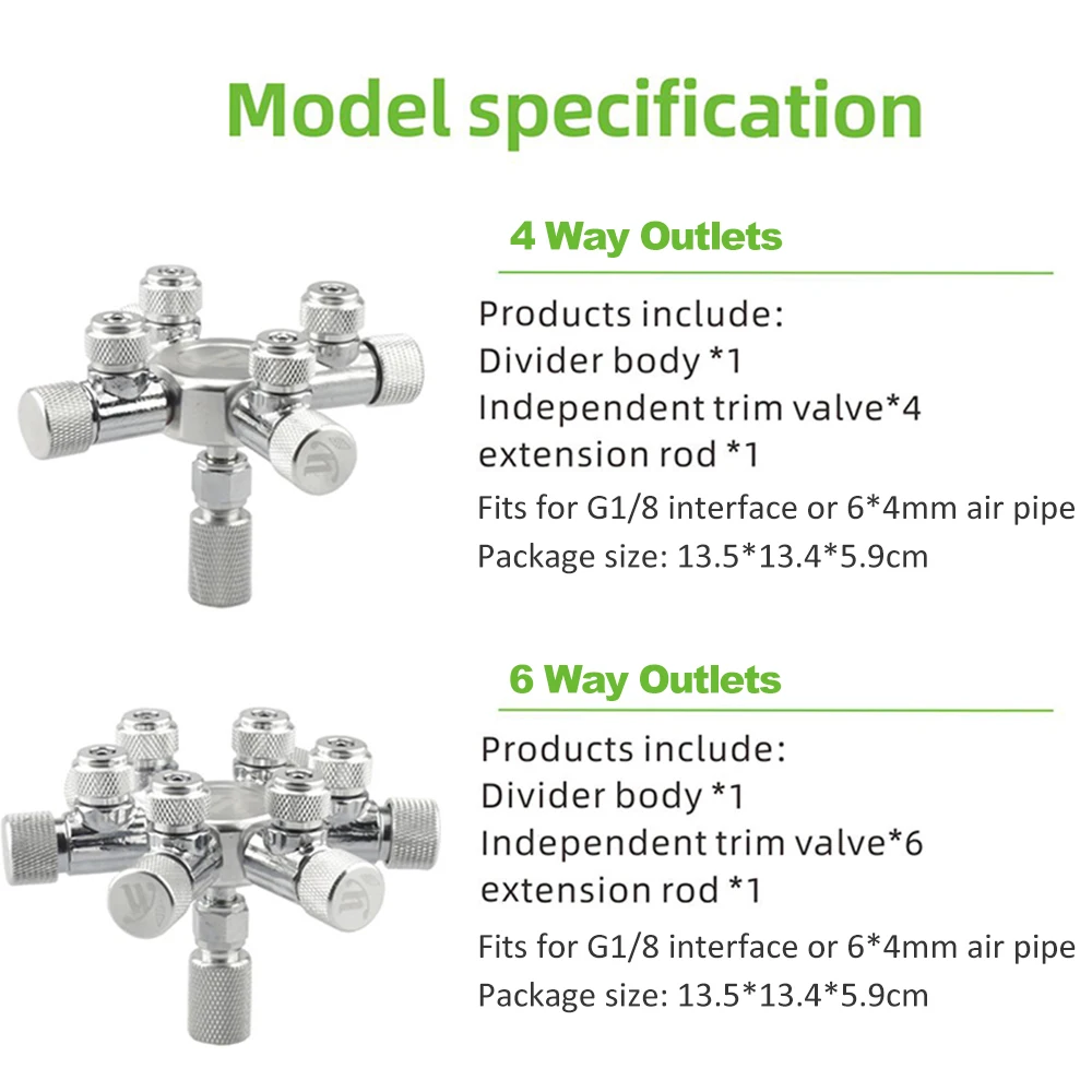С помощью этого сплиттера вы можете легко подключить до двух или более диффузоров CO2 из одного цилиндра CO2. Клапан тонкой регулировки используется для регулировки количества углекислого газа, этот клапан с высокой регулировкой тонкости, нет утечки воздуха под системой высокого давления. 4 вида каналов по желанию, можно использовать в нескольких аквариумах одновременно. Сохраняет ваши водные растения здоровыми, более удобными и экономит энергию.