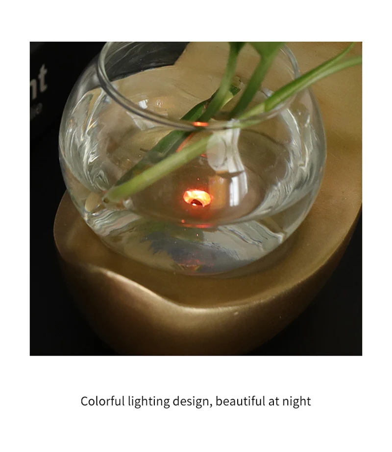 Есть светодиодный светильник s в нижней части стекла, который может излучать светильник. Его можно использовать как вазу или аквариум. Творческие партнеры делают вашу гостиную более интересной.