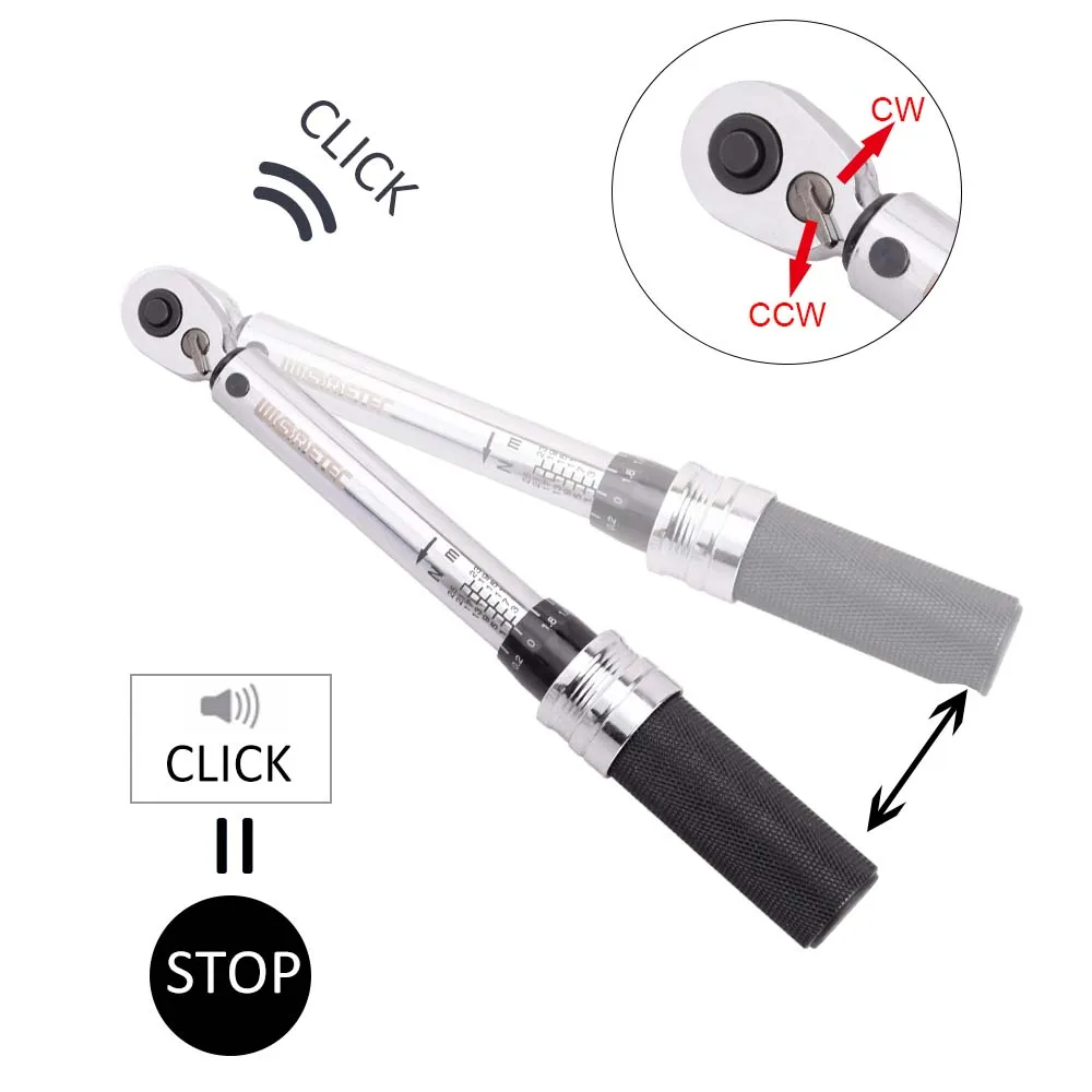 Достигает заданного крутящего момента, гаечный ключ «нажмите» звук и отпустите крутящий момент.