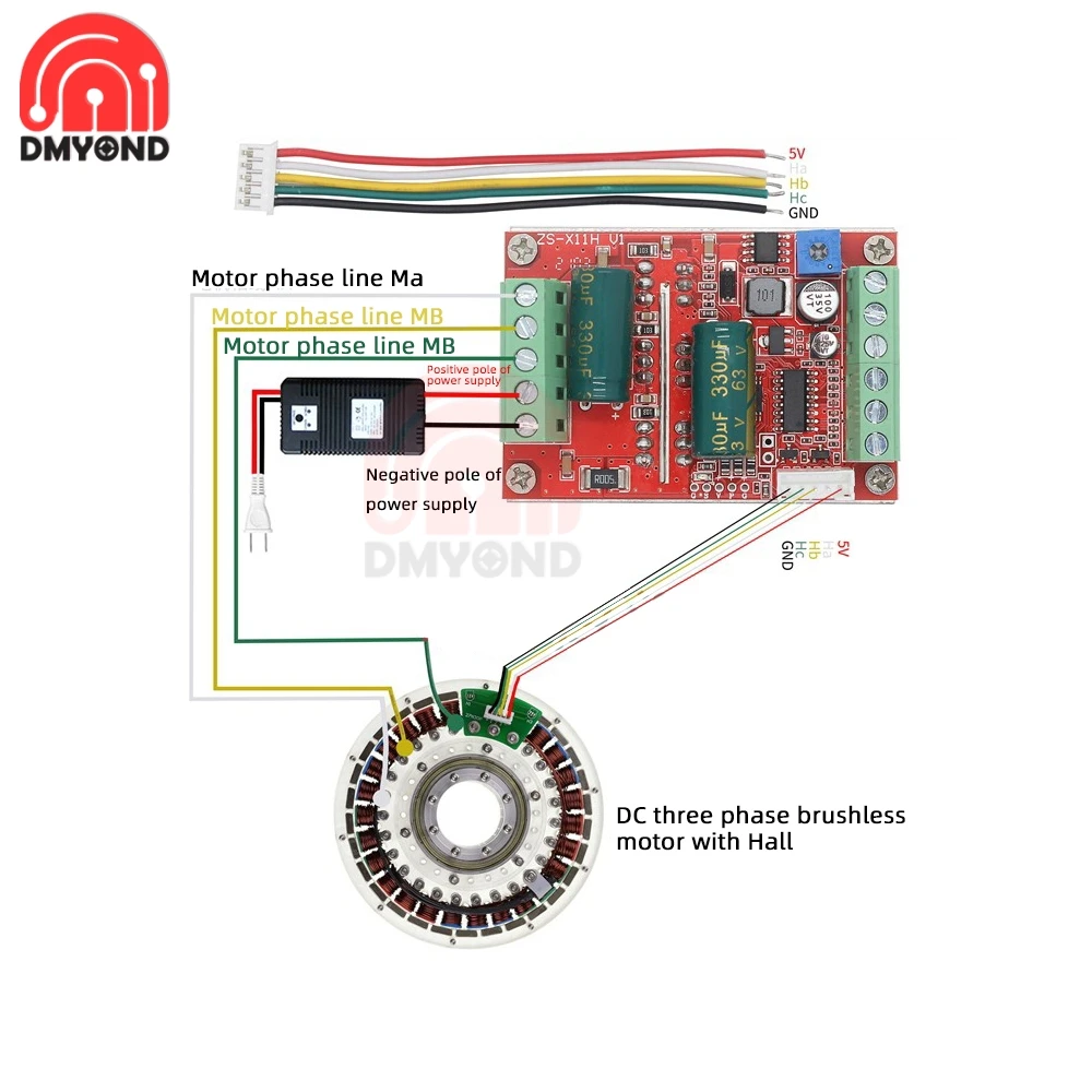 7. Ha Hb Hc + 5V GND Hall сигнал питания, как правило, с двигателем Холла имеет пять соответствующих линий
