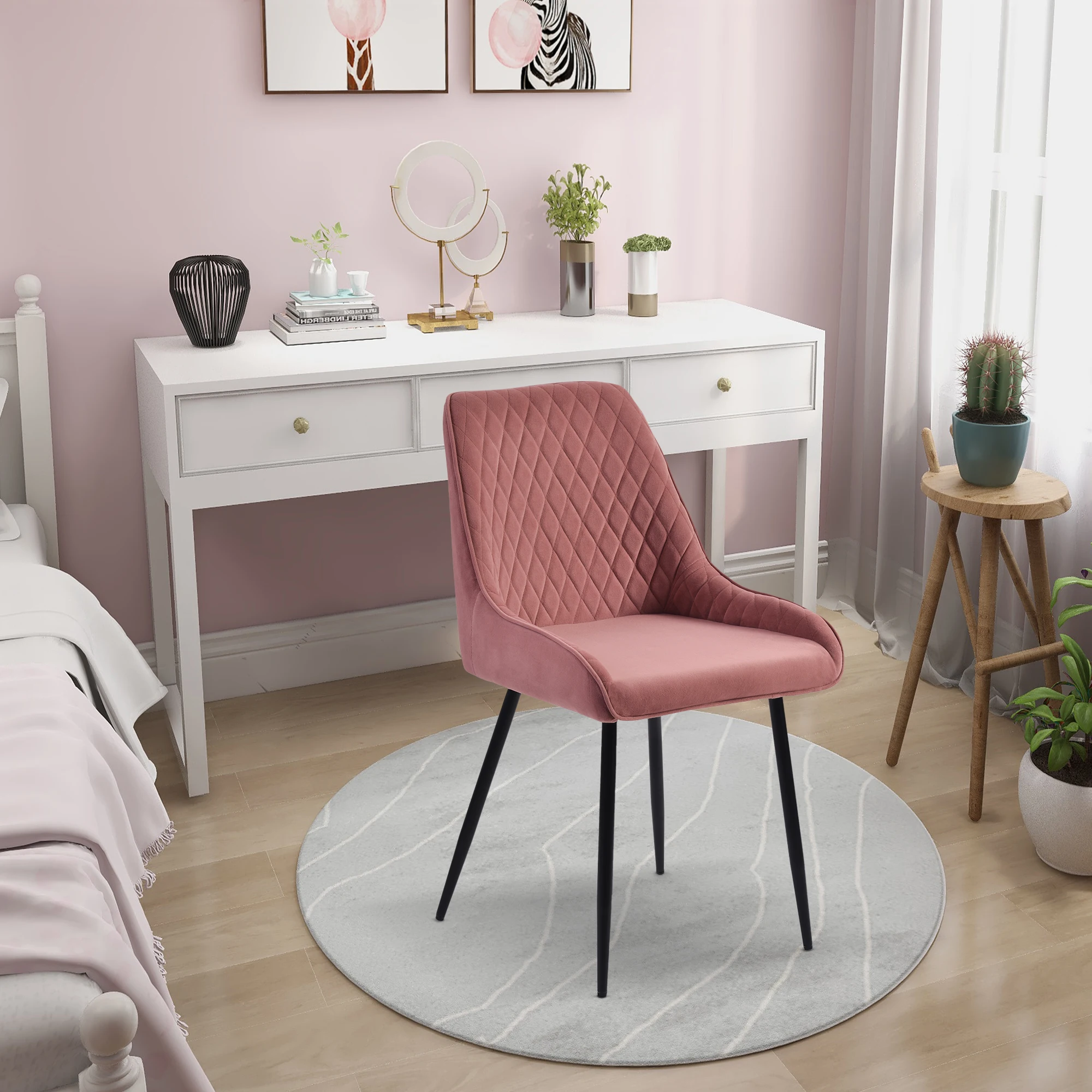 Название продукта: бархатный стул Материал: губка высокой плотности + сталь Отделка: бархат высокой плотности + спрей Цвет: розовый Требуется сборка: 3 мин Упаковочный лист: 1 x стул + винты и необходимые инструменты + 1 * Инструкция по сборке Посылка: 1 шт.