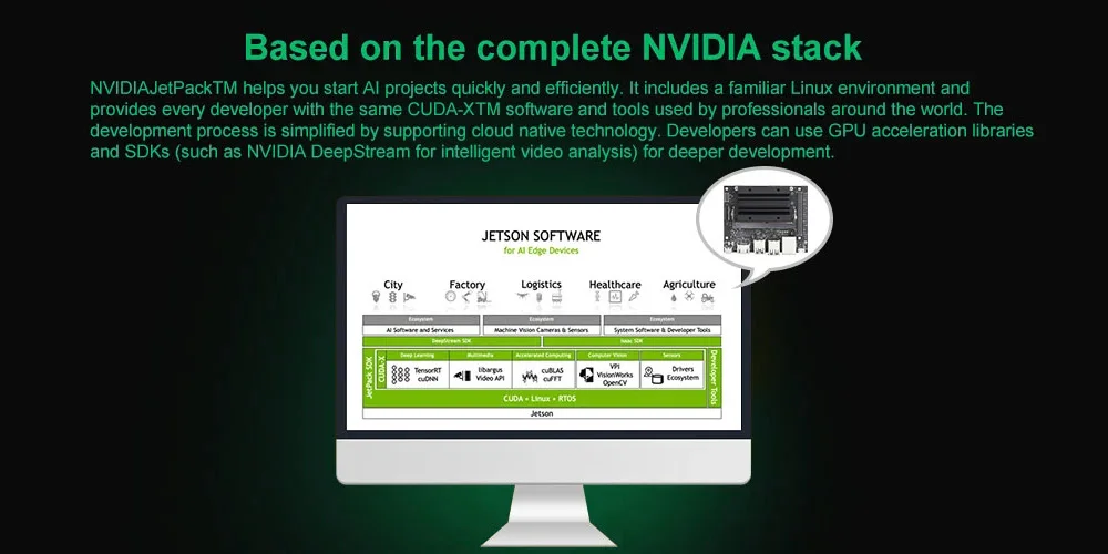 Описание Nvidia Jetson Nano™2GB Developer Kit-это удивительный компьютер AI, разработанный для производителей, студентов и встроенных разработчиков. Набор позволяет создавать параллельные рамки искусственного интеллекта, такие как классификация изображений или обработка речи, на простой в использовании платформе, работающей всего на 5 Вт. Это делает мир AI и робототехники доступным для всех с точно таким же программным обеспечением и инструментами, используемыми для создания прорывных AI продуктов во всех отраслях промышленности. Нет лучшего способа начать. Характеристика 1. Меньший размер, более низкая цена, более высокая стоимость. 2.GPU: 128-core NVIDIA Maxwell, Процессор: quad-core ARMR A57G 1,43 ГГц, Оперативная память: 2 Гб 64 бит LPDDR4. 3. Он поддерживает работу различных передовых нейронных сетей, тенсорпотока, пифакела, Caffe/Caf2, Keras, MXNet и т. д. 4. Он может обрабатывать 8 HD видео потоков в режиме реального времени. 5. Мы предоставим некоторые обучающие материалы, включая разработку окружающей среды, установку TensorFlow, приводные камеры, YOLOv4-tiny распознавание объектов и т. д. 6. Это позволяет пользователям научиться AI и создавать своих собственных роботов с более низкой ценой. Список посылка 1x Jetson Nano 2 Гб доска