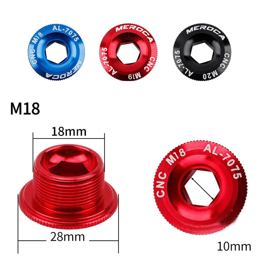 Weight: 7g Material: Aluminum Alloy Size: M18/M19/M20 Color:Black,Red,Blue,Rainbow color Package includes:1pc Crank Bolt Cover Cap M18 threaded screws are suitable for PROWHEEL hollow one chain ring FS.A crankset and the old FC 4500 and FC 5600 highway cranksets, etc. Crankset etc. M19 threaded screws are suitable for IXF, LEBYCLE and other brands of hollow integrated crankset M20 crank cover screw for Shiman0 kit Such as: M4000, M590, M596, M661, SLX, XT, XTR and other integrated chainrings If you are not sure about the specifications, please measure by yourself. Features: CNC aluminum alloy mountain bike color crank cover BB central axis screw Shiman0 sprocket specifications Aluminum alloy CNC machining, precision & strength, much better than the original plastic screws. Various colors, suitable for personality modification.