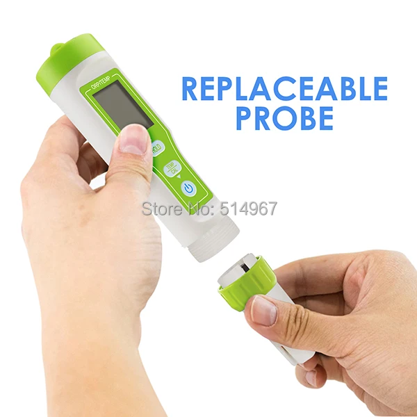Недорогой и практичный тестер с широким спектром применения-от домашнего до лабораторного и промышленного (тест питьевой воды, в аквариумах, искусственных резервуарах, сточных водах), бассейнах, системах очистки воды, аквакультурой, спа и т. Д. Особенности: Компактный размер и легкий вес для подвижности IP65 водонепроницаемый уровень Функция удержания Автоматическое выключение после 10 мин холостого хода Функция автоматической калибровки Выбираемый температурный блок (°C/°F) Индикатор низкого заряда батареи