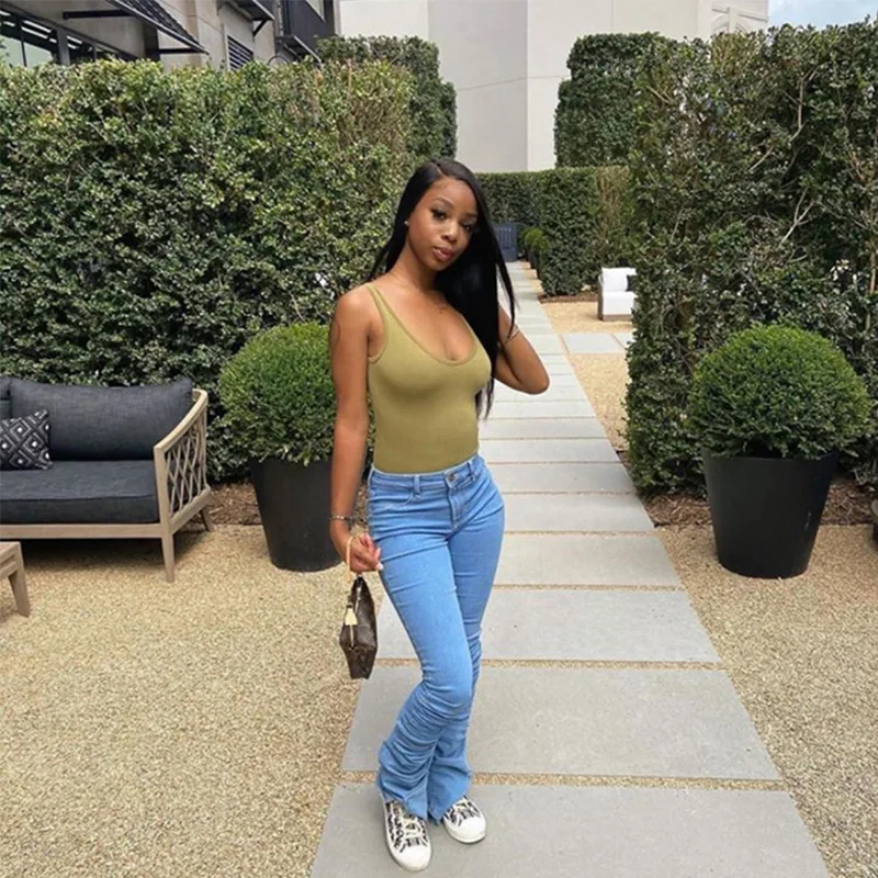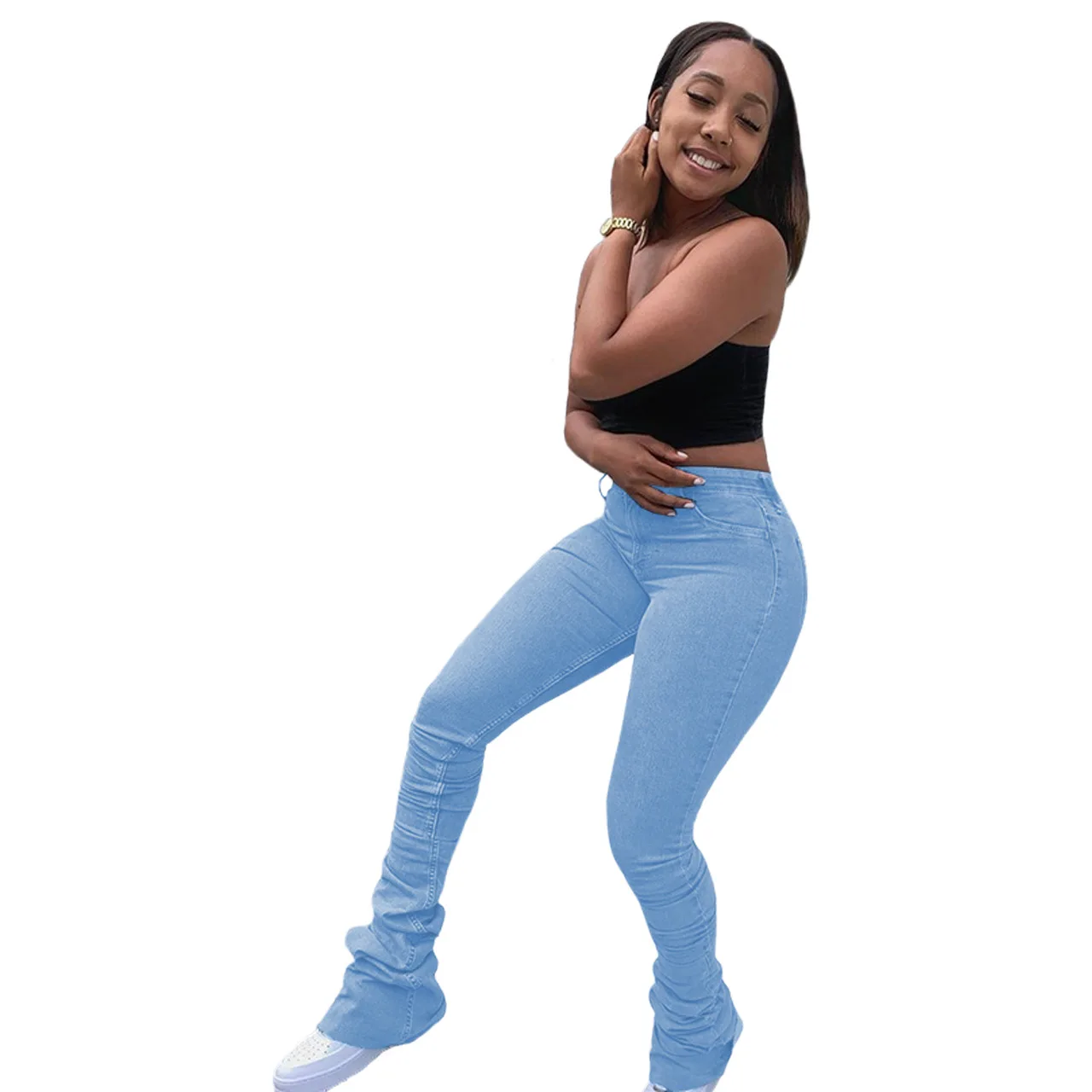 Джинсовые штаны с высокой посадкой, женские синие брюки с рюшами на осень 2021, женская одежда, уличные джинсы, модные обтягивающие Брюки с карманами