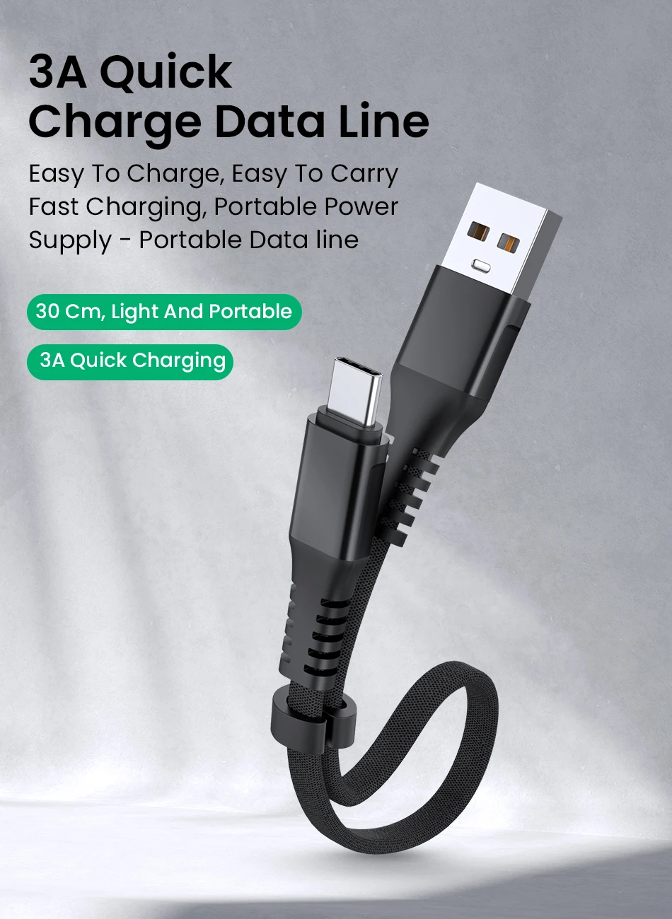 30 см складной USB кабель для передачи данных для iPhone 12 11 X XS Max 8 7 6 5s 6s Plus 3A Micro USB Type C зарядное устройство для телефона короткий шнур