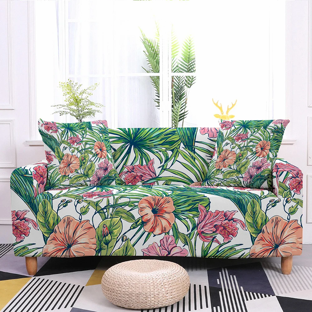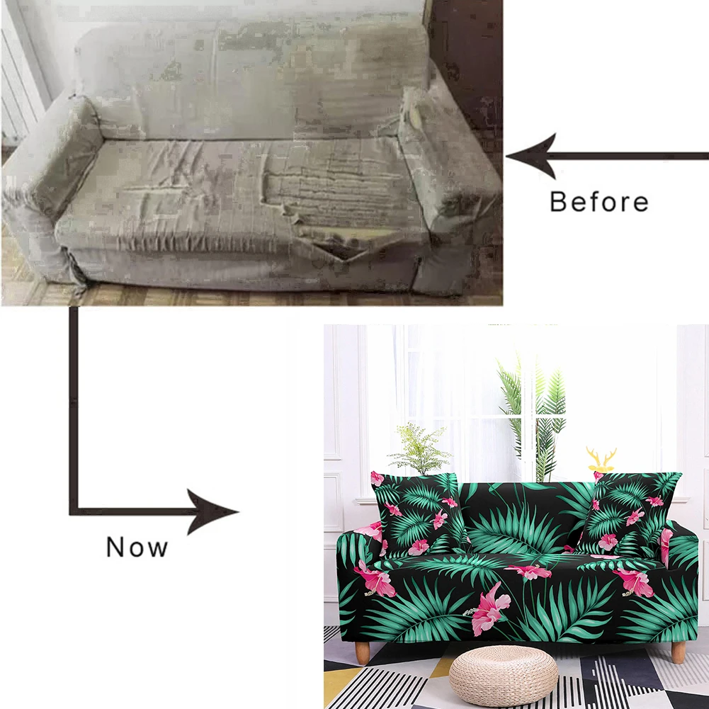 Material: 92% Polyester + 8% Spandex Pattern: Flower&Leaf Style:Modern Color:As the pictures show Size: Single seat sofa cover: suitable for 90-140cm Two-seater sofa cover: suitable for 145-185 cm Three-seat sofa cover: suitable for 190-230 cm Four-seater sofa cover: suitable for 235-300 cm Applicable sofa: armless sofa, sofa with armrests, L-shaped sofa, sectional sofa Measure your sofa with armrests and choose the size. If you don't MEASURE it, the sofa cover will be smaller than your sofa. Package includes : 1pc sofa cover