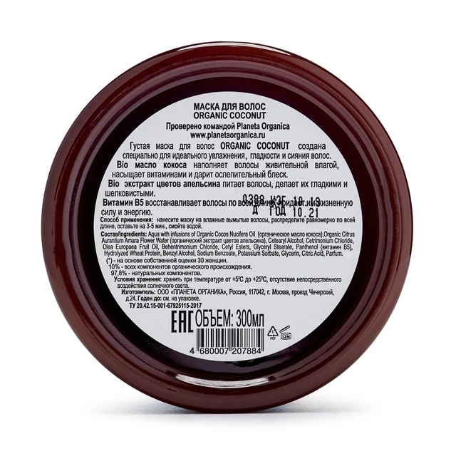 Густая маска для волос Organic Coconut создана специально для идеального увлажнения и гладкости и сияния волос.