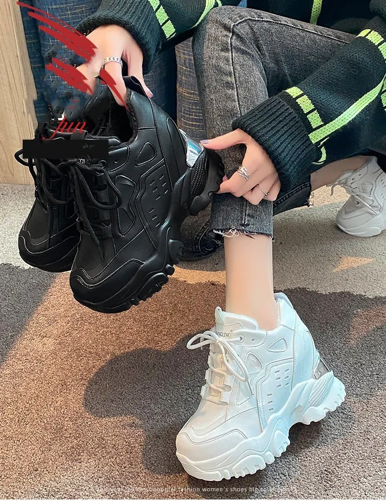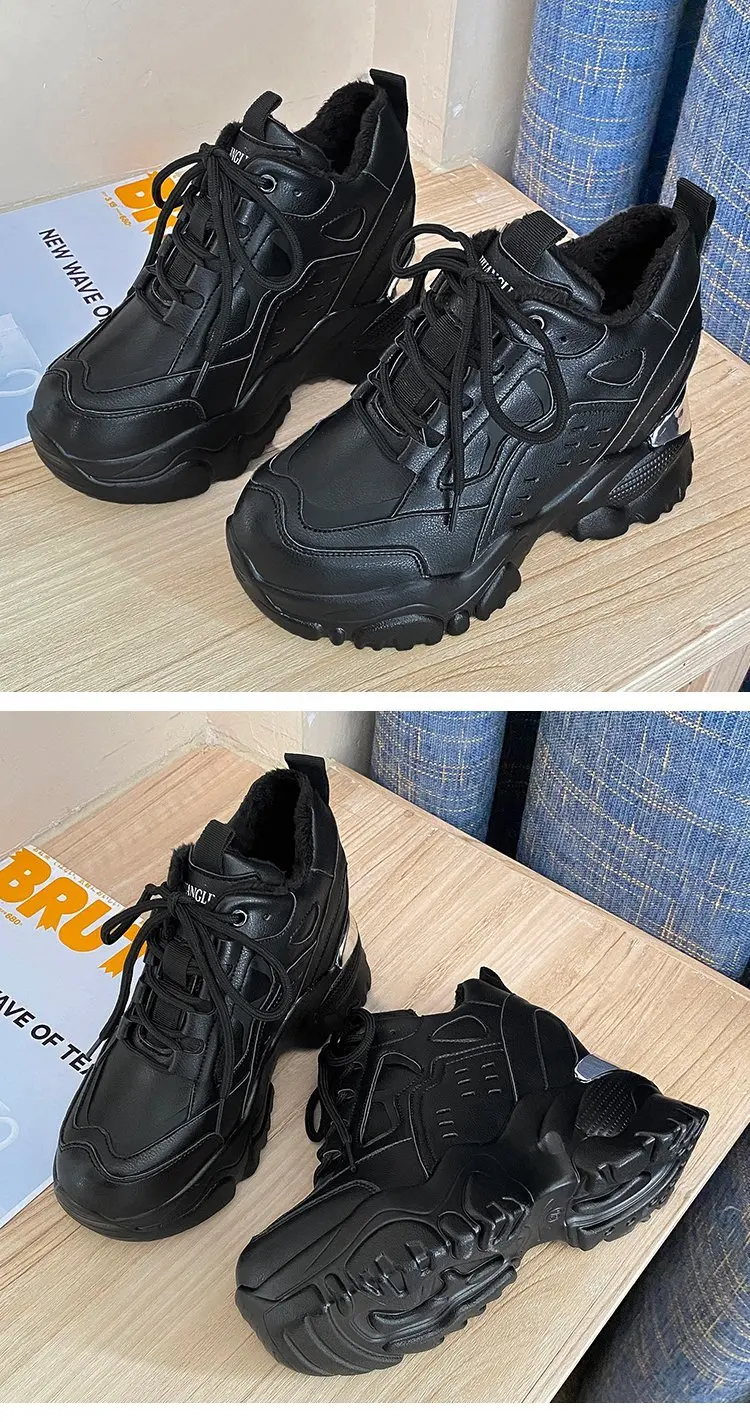 Теплые кроссовки на массивной платформе, женские зимние кроссовки на толстой подошве, на шнуровке, из вулканизированного плюша, женская повседневная обувь, увеличивающая рост, 2020