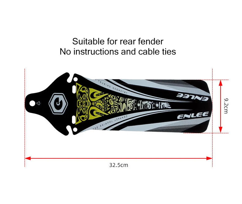 Бренд: ENLEE Название: крыло для велосипеда Материал: термопластичная Смола PP5 Цвет: стиль A/Стиль B/стиль C/стиль D/стиль E/стиль F Размеры: 28*26,5 см (A/B/C/D), 27,5*30 см (E), 32,5*9,2 см (F) Вес нетто: 30 г (A/B/C/D/E), 22 г (F) В том числе: брызговик + Фиксатор кабеля + руководство Особенности: Легкая установка, мягкий материал и хорошая прочность, не легко сломать