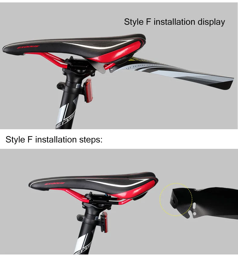 Стили A/B/C/D/E подходят для передних и задних брызг велосипедов (подходит для большинства велосипедов) Стиль F подходит для заднего крыла велосипеда Стиль F не отправляет фиксированный кабель и руководство