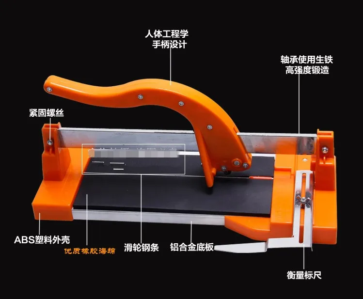Принцип резки аналогичен принципу алмазного стеклянного ножа. Он может разрезать все виды керамической плитки прямыми линиями и дугами, включая застекленную или застекленную внутреннюю и внешнюю стеновую плитку, напольную плитку, трехмерную плитку, керамические пластины, глазурованную фарфоровую плитку и плоское стекло. Аккуратный разрез, низкая стоимость, без электричества, без холодной воды, без шума, вес, легкий в использовании и переноске светильник.