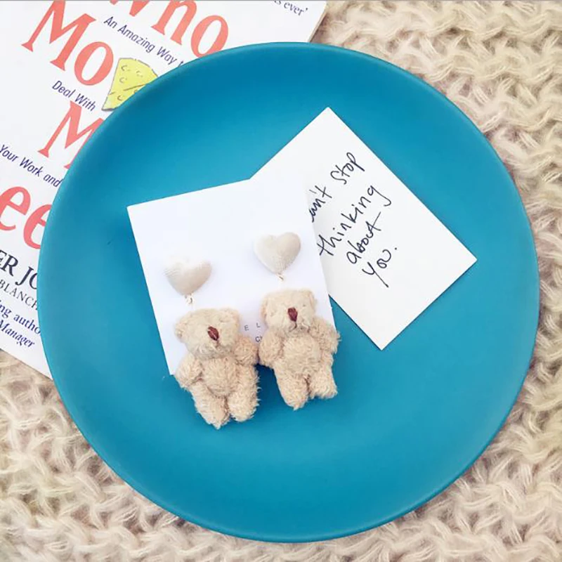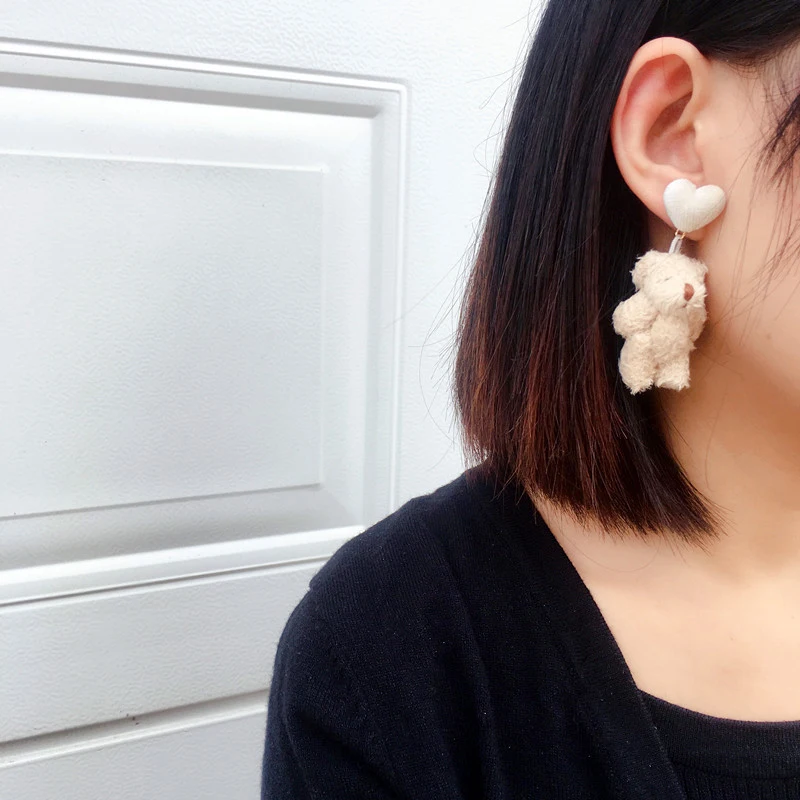 Название бренда: Lateefah Пол: женские серьги Стиль: милые серьги Форма: серьги с животными Материал: металлический наушник Материал 2: хлопковые серьги Тип изделия: серьги-капельки Форма: серьги с плюшевым мишкой Цвет: серьги с коричневым медведем Узор: серьги в виде панды Стиль 2: серьги с медведем и клипсы для ушей