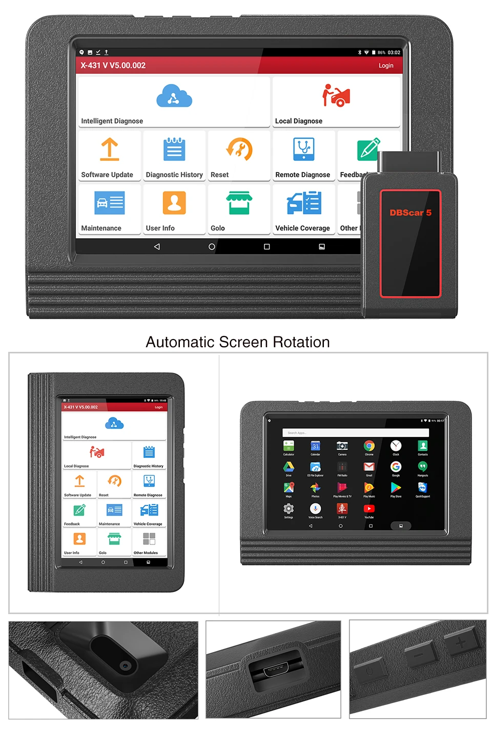 X-431 V связь через bluetooth, очень проста в использовании. X-431 v компьютер специально разработан для платформы Android с четким и удобным интерфейсом. X-431 V Pad Компьютер оснащен эксклюзивным X-431 V защитный рукав, чтобы предотвратить его от повреждения; Встроенный модуль Wi-Fi делает серфинг в Интернете свободно;