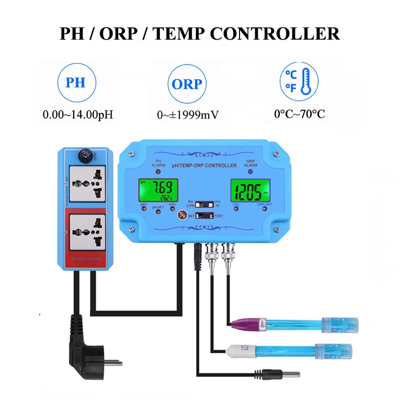 * PH / TEMP / ORP три дисплея и с функцией контроля pH.