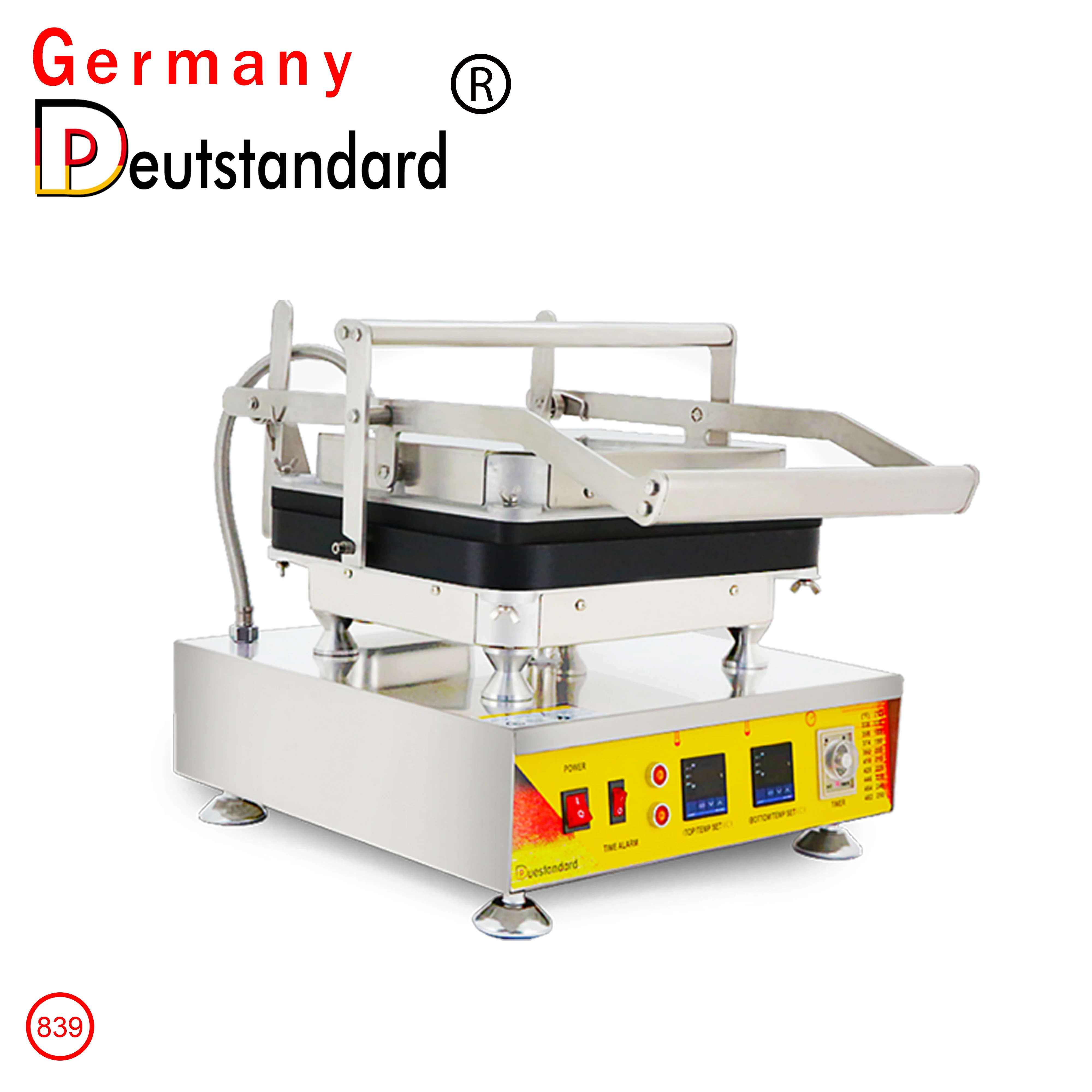 Эта машина проста в эксплуатации, шаблон и система отопления разделены, до тех пор, пока 4 Руфь может легко заменить шаблон (можно выбрать более 30 различных стилей), одна машина многоцелевой, меньше места, верхний и нижний шаблоны могут быть независимо контролируемыми температурой, может устанавливать различные температуры, Таким образом, что продукт может достичь идеального эффекта выпечки, новейший практичный патентный дизайн Застежки компании, сделать толщину продукта однородным, идеальное формование, точный контроллер времени, контролируемый схемой, время 0-10 минут регулируется, время, чтобы иметь функцию предупреждения музыки, больше времени, чтобы управлять другими вещами, Может обеспечить рациональное использование времени, повысить эффективность, специальный масляный бак, избыток масла поступает в заднюю часть резервуара, уменьшить работу по очистке, бак может быть разделен свободно, прост в эксплуатации. Обтекаемый дизайн, высококачественный красивый.