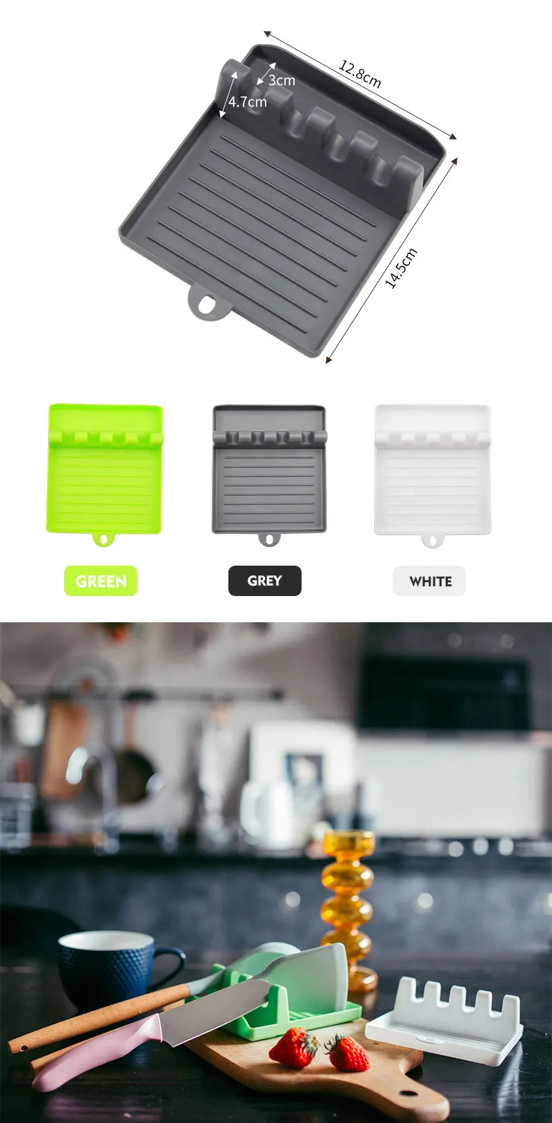 Пищевой силиконовый материал, здоровый и прочный, легко моется Креативный дизайн с 4 отверстиями, легко решить различные кухонные инструменты, такие как лопатка, ложка для супа, скребок, палочки для еды с вилкой для ножей и т. д. Чтобы защитить поверхность стола чистой, легко чистить жизнь кухни.