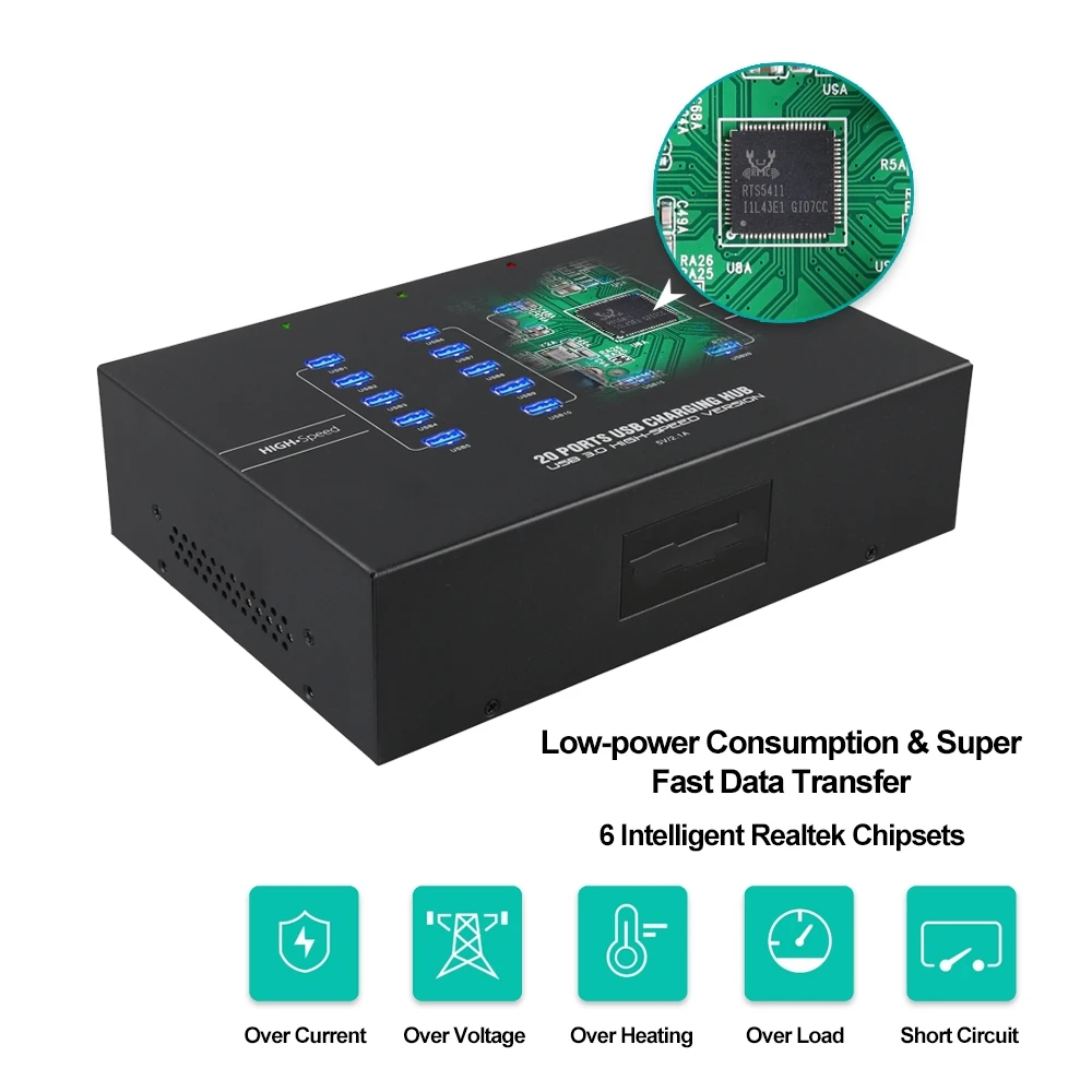 Этот концентратор промышленного класса USB 3,0-это Суперскоростной концентратор USB 3,0 с 20 портами, который обратно совместим с USB 2,0 и USB 1,1. Концентратор совместим со спецификацией USB 3,0 и может расширить один порт USB 3,0 на 20 высокоэффективных портов USB 3,0. Применяются для поддержки 20 правоохранительных чекеров для одновременного применения синхронизации данных и зарядки, для зарядки и синхронизации файлов для камеры тела политики. Он может обеспечить максимальный зарядный ток 1000 мА на порт. Он оснащен защитой от перенапряжения и перегрузки по току для обеспечения безопасности. Большинство клиентов также используют эту модель для ремонта мобильный телефон/мобильный телефон ремонт телефонов.