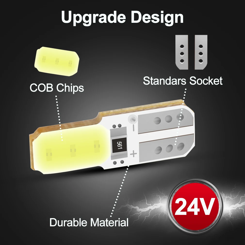 10 шт., 24 В, T10, W5W, 194, 168, COB, светодиодная лампа для автомобильных поворотников, лампа для номерного знака, лампа для стайлинга автомобилей, автомобильные аксессуары