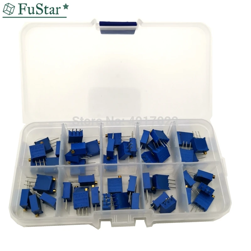 50Pcs/Lot 3296W Multiturn Trimmer Potentiometer Kit High Precision 3296 Variable Resistor 500R 1K 2K 5K 10K 20K 50K 100K 200K 1M
