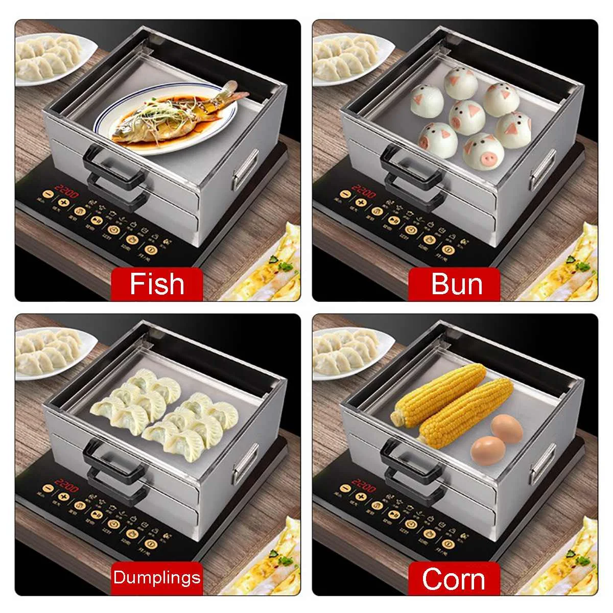【 5 】 отпариватель ящика из нержавеющей стали -- добавьте воду в нижнюю часть паровой коробки и поместите ее непосредственно на индукционную плиту или газовую плиту. Он может парить тарелку около каждой минуты, что быстро и удобно, и дает семье здоровый завтрак.