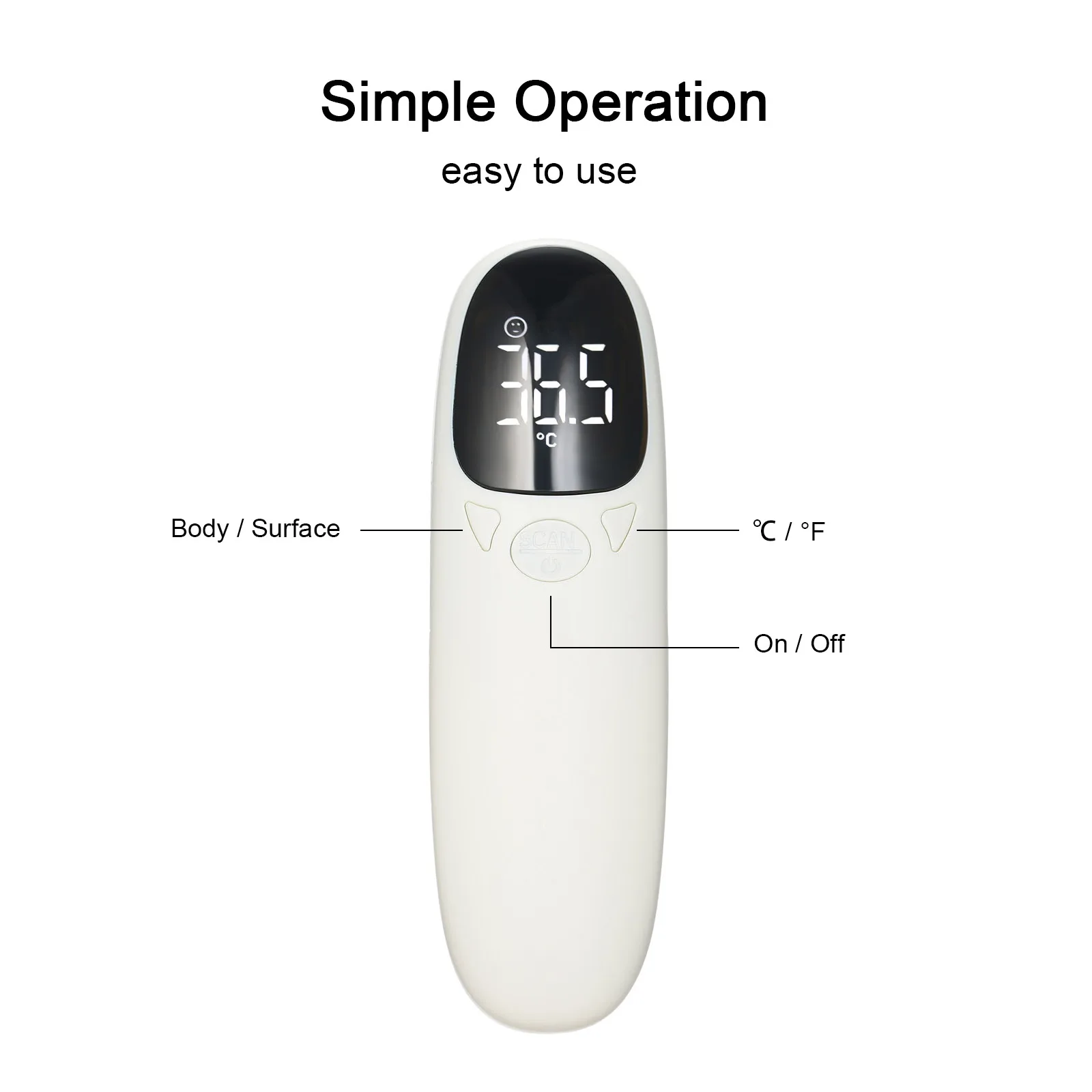 Бесконтактный дизайн:Инфракрасный термометр, простой в использовании, проверка температуры без контакта с телом или объектом, безопасный, надежный (расстояние измерения: <5 см).