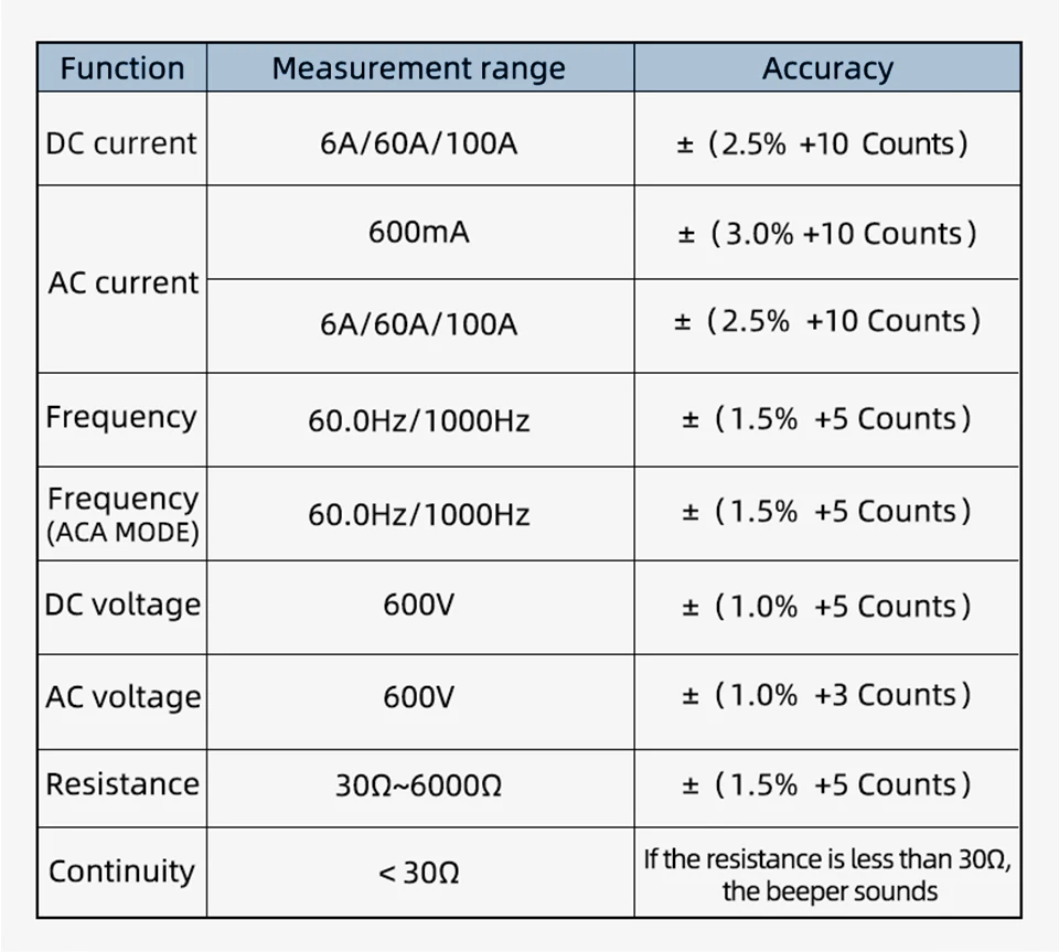 Описание товара:Ультра-Портативные Инструменты для продвинутых электриков. Больше внимания к тесту постоянного/переменного тока, результаты тестирования более стабильны и точны. Постоянный ток переменного тока может быть протестирован быстро, точно и безопасно, не повреждая изоляцию на поверхности линии. Максимальное значение дисплея: 6000 шт. Постоянный ток/переменный ток 0 ~ 100A (разрешение 1mA), ток переменного тока 0 ~ 600mA (разрешение 0.1mA), по сравнению с аналогичными продуктами, ACM92 все еще имеет 1mA точность (0 ~ 6A) для большего диапазона измерений. Имеет нулевую чистую функцию, тест постоянного тока является более точным. При тестировании напряжения/тока переменного тока одновременная частота отображения. Поддержка одноручного переключения всех тестовых функций, что делает работу более удобной и быстрой. ЖК-дисплей с подсветкой для четкого чтения. Имеет функцию удержания данных, функции индикации низкого заряда батареи, функции автоматического отключения питания, добавлены задние крючки. С защитой от перегрузки на всех диапазонах.