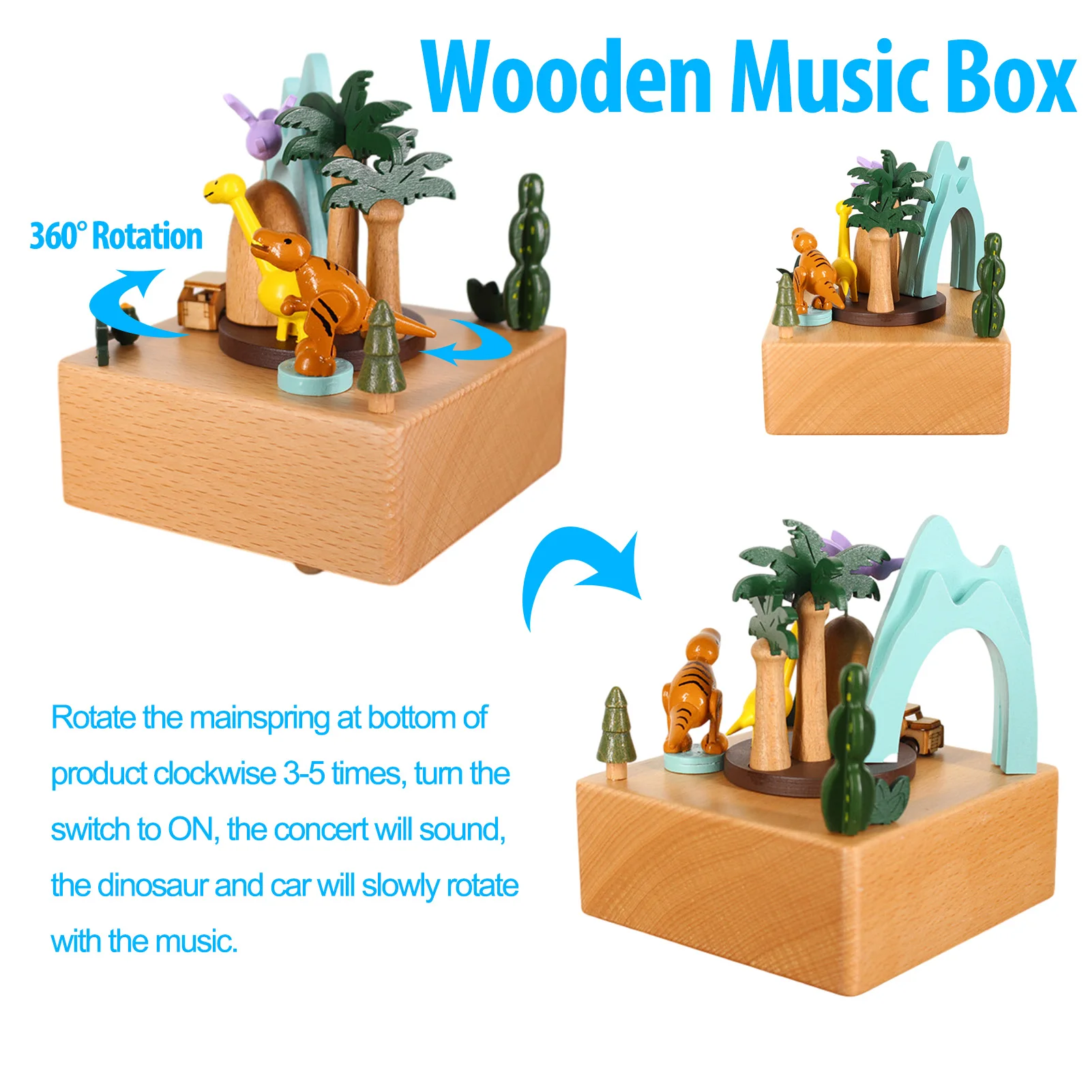 1. Вращение на 360 °: поверните пружину в нижней части изделия по часовой стрелке 3-5 раз, включите переключатель, концерт будет звучать, динозавр и машина будут медленно вращаться с музыкой.