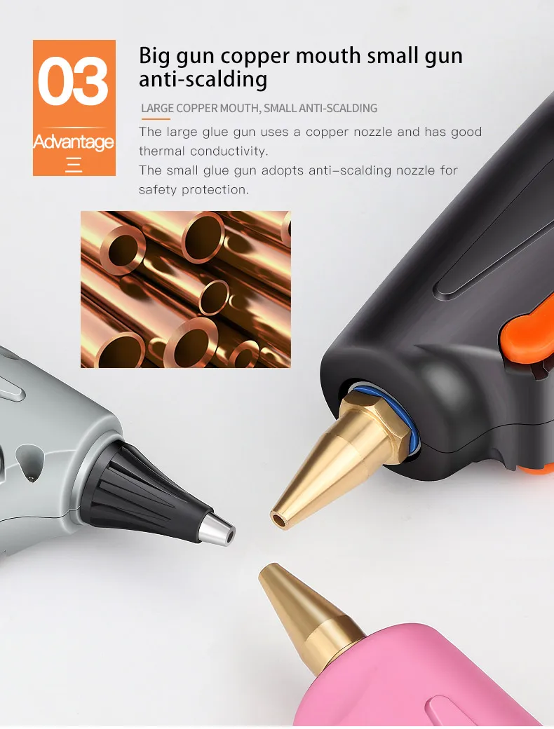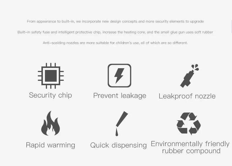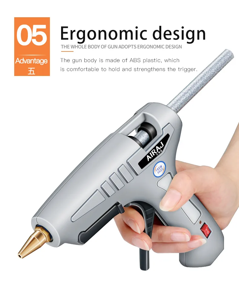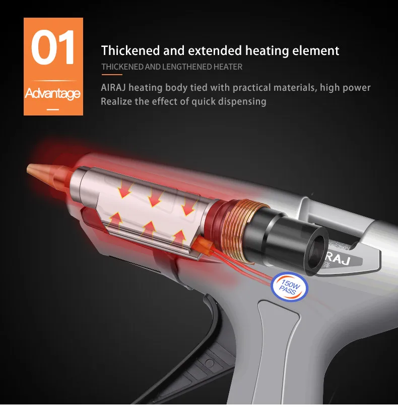AIRAJ Защитная термоплавкая клеевая пушка Обновленный чип защиты Безопасность выше всего остального Креативная ручная паста От внешнего вида до встроенного, мы включаем новые концепции дизайна и больше элементов безопасности для обновления Встроенный предохранитель безопасности и интеллектуальный защитный чип, увеличивают нагревательный сердечник, а маленький клеевой пистолет ИСПОЛЬЗУЕТ мягкую резину Антиобжигающие насадки больше подходят для использования детьми, все они так отличаются.