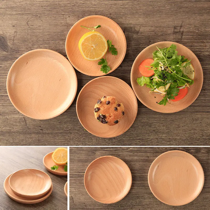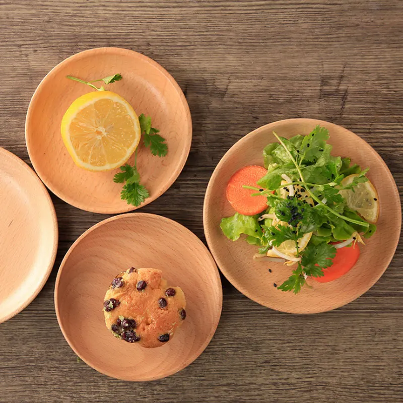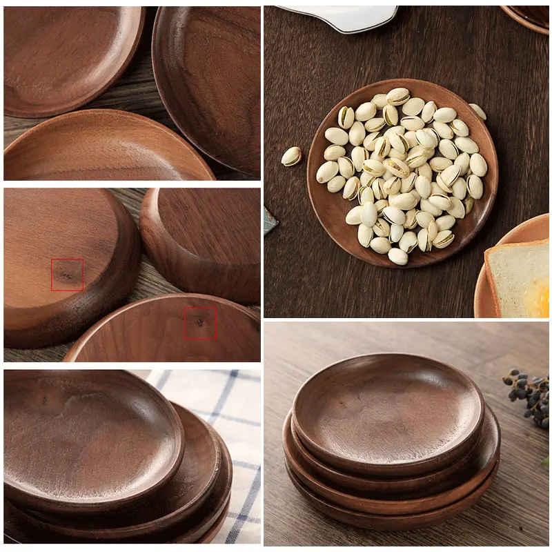 Деревянный дизайнерский круглый поднос для посуды ручной работы, тарелка из орехового дерева
