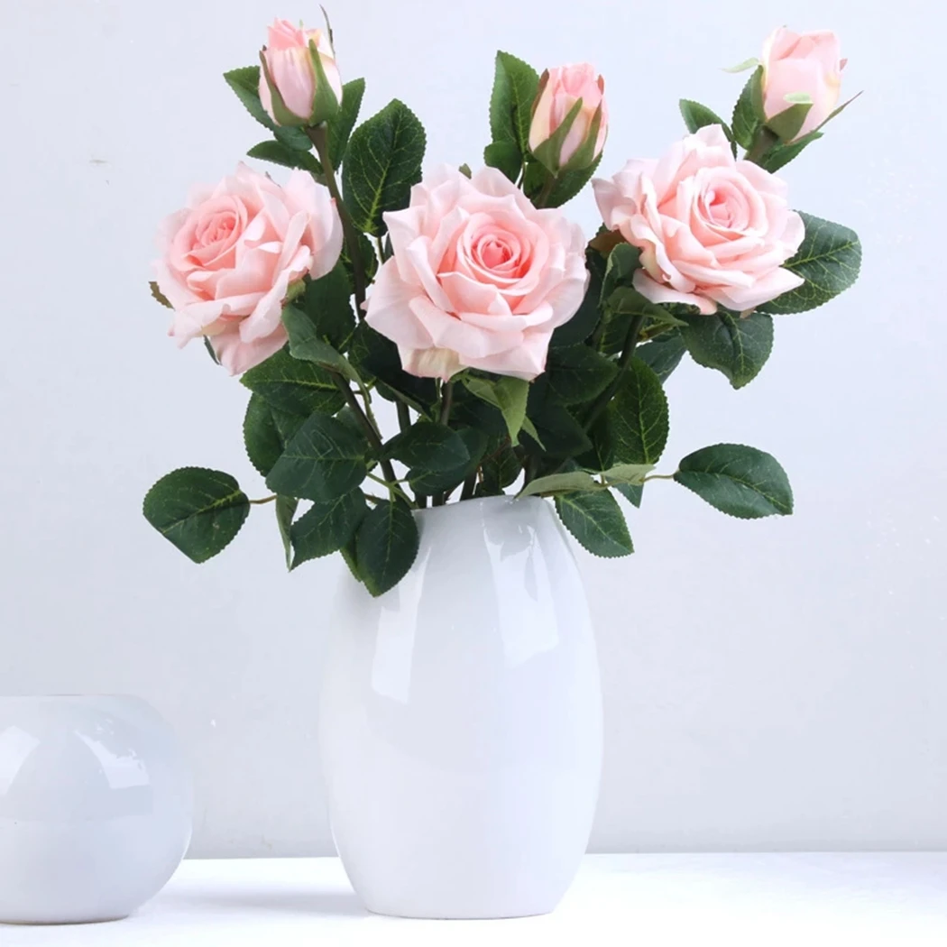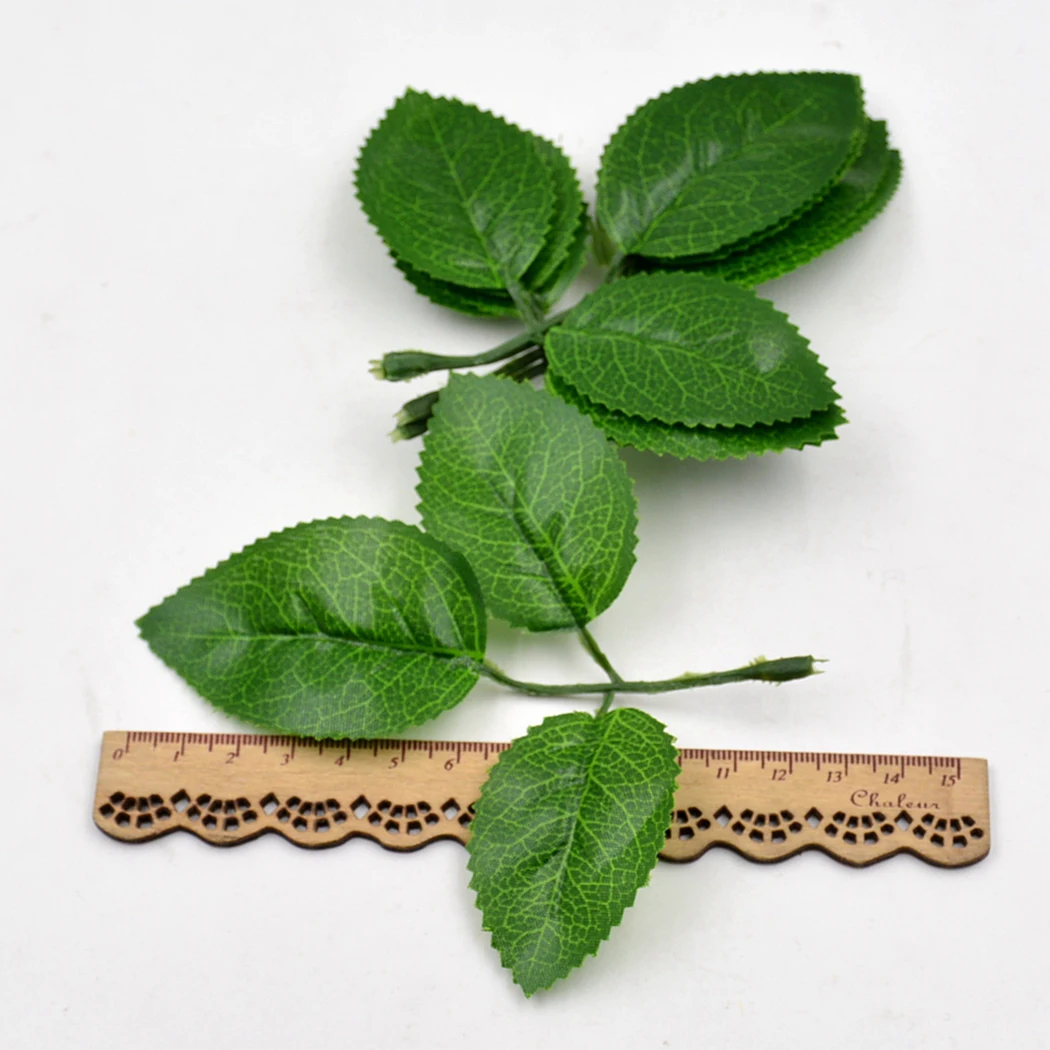 50 шт. искусственные листья розы 3 ветви поддельные листья цветка реалистичные искусственные зеленые Стволовые листья для домашнего офиса вечерние свадебные украшения