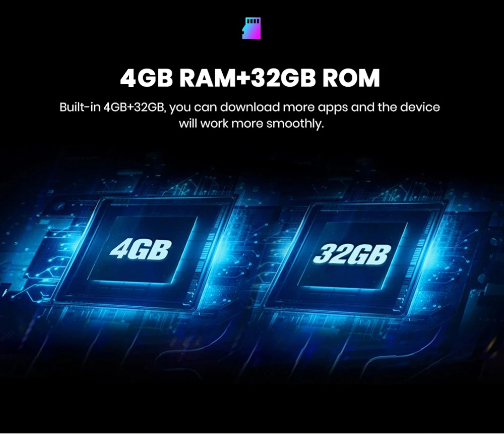 Встроенный 4BG + 32gb, вы можете скачать больше приложений, и устройство будет работать более плавно.