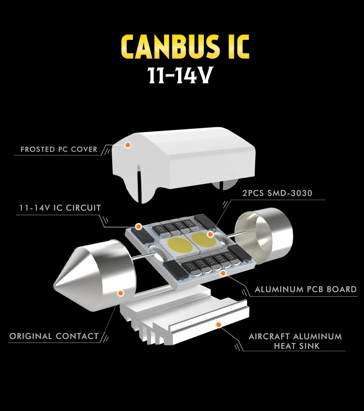 -Каждая лампочка оснащена 2 SMD-3030 светодиодный чипами, монтируемыми под крышкой, для выхода супер яркий светильник.