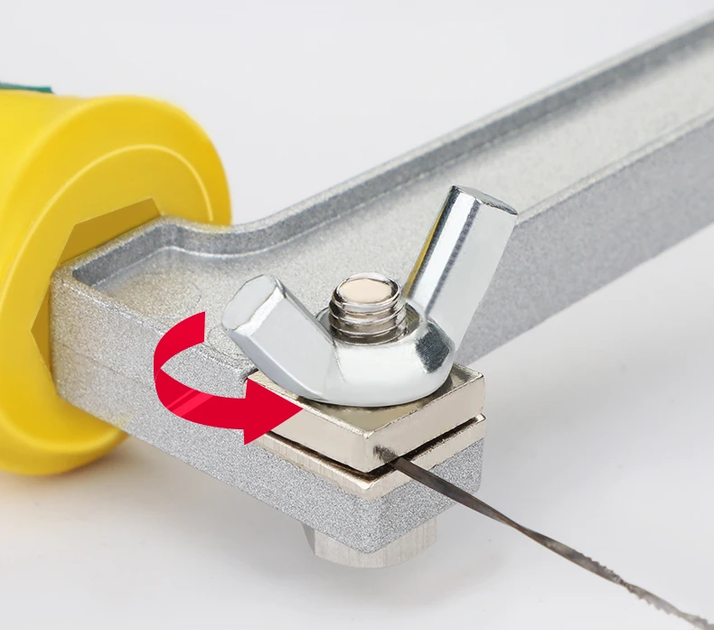 Бренд: AIRAJ Материал: Высокопрочный алюминиевый сплав, углеродистая сталь, нескользящая пластиковая Резина Модель: маленькая/Большая u-образная пила Характеристика: 1. Прорезиненная Нескользящая ручка, подходит для дуги ладони, нескользящая одежда 2. Пильный диск из чернильной стали, острый износ 3. Увеличьте винт руки для облегчения силы 4. Теплая крышка для защиты сердца, легко затягивает винты Размер и вес: Спецификация Регулируемый диапазон пильного диска Глубокий Длина ручки Общий вес Большой 0-14,6 мм 10 см 11 см 232 г Маленький 0.-13,4 мм 5,5 см 11 см 199 г