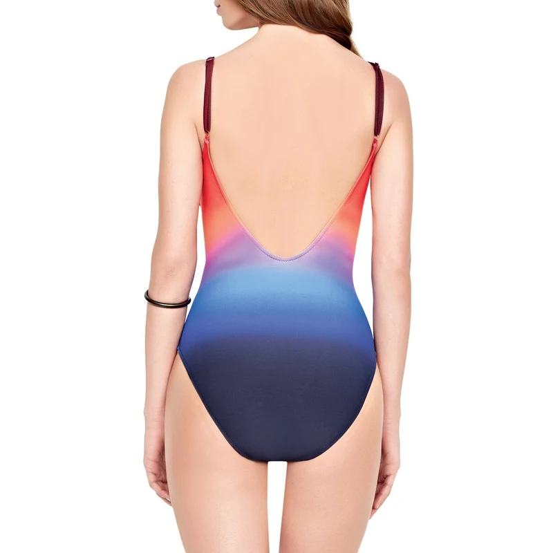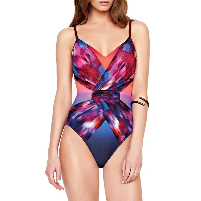 Оригинальный принт Галактика. Спереди драпировка, собранная по центру. Мягкие комфортные чашки, резинка под грудью, утяжка спины и живота, тонкие регулируемые бретели. Специальные боковые швы Contour идеально формируют фигуру.
