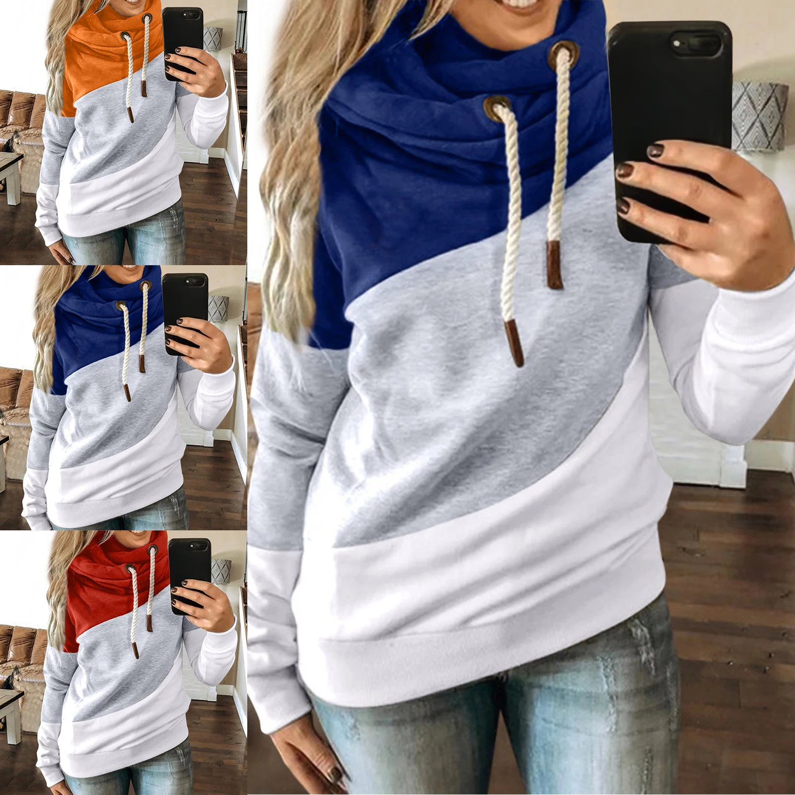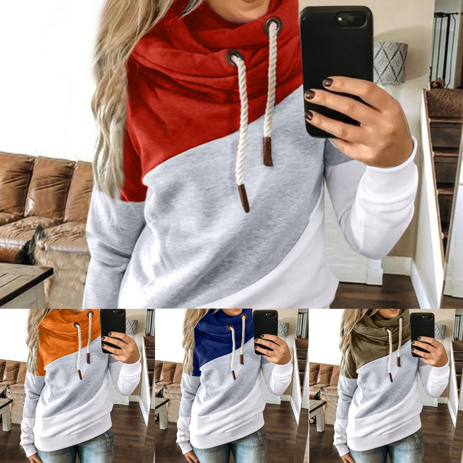 Этот свитер-пуловер с воротником-хомутом; Топы с милым контрастным цветным блочным принтом в полоску; Повседневная свободная посадка.