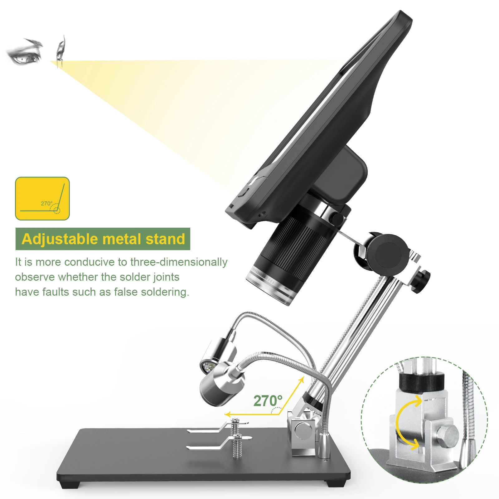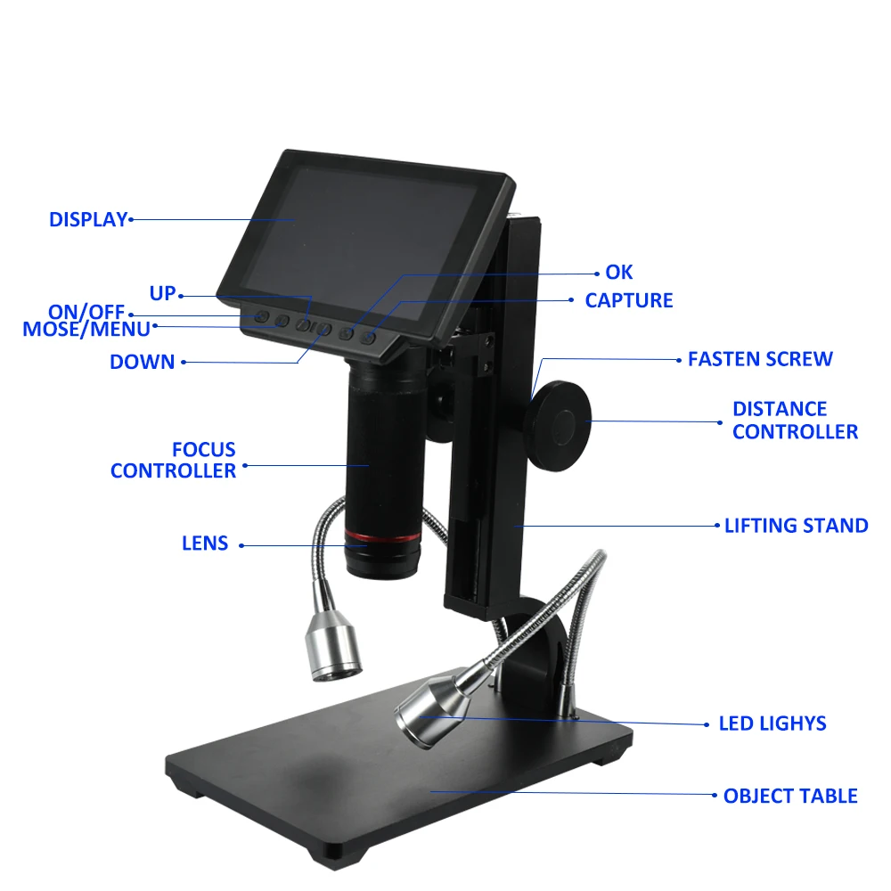 Этот цифровой микроскоп имеет 8,5 дюймовый ЖК-экран, и угол дисплея микроскопа может быть отрегулирован, с 10 светодиодный ными лампами, которые могут быть отрегулированы и im-age ясно, поддерживает запись на карте памяти и 12 языков, которые могут широко использоваться в нашей повседневной жизни. Давайте и попробуйте.