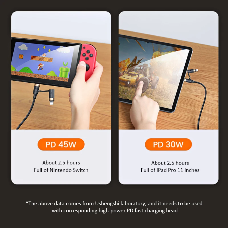 *PD 60W (max) high power output, 3A (max) high current, fast charging transmission speed.