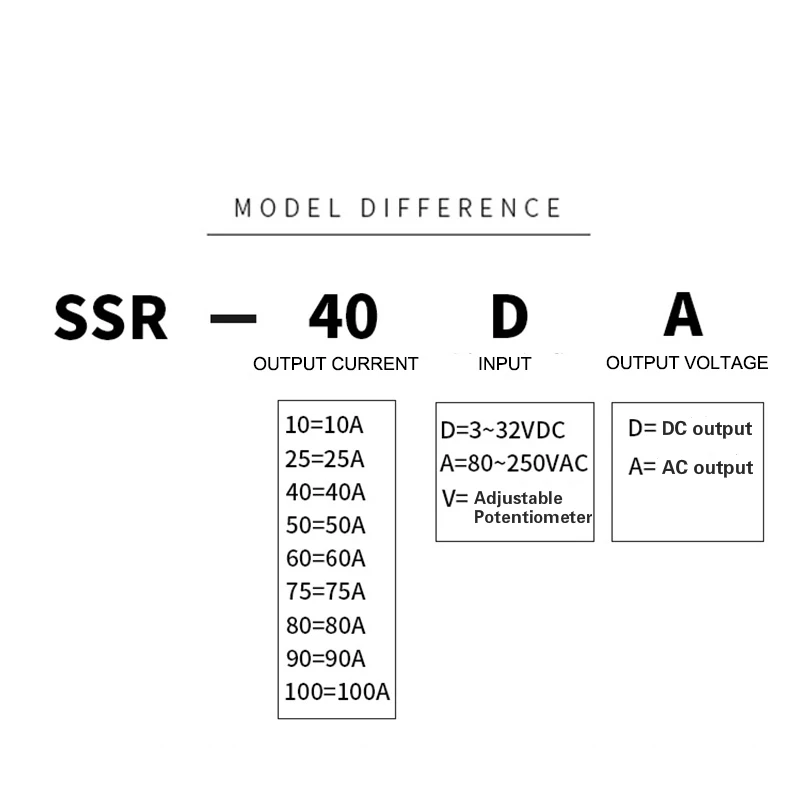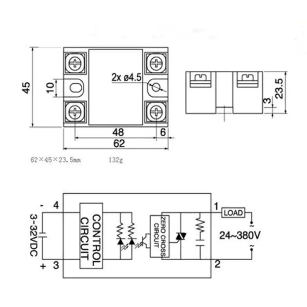 Особенности: 1. Небольшой контрольный входной сигнал, непосредственно управляющий большой нагрузкой тока. 2. Длительный срок службы, отсутствие контакта, искры, шума, электромагнитных помех. 3. Скорость переключателя быстрая, способность анти-помех сильная, и работа надежная. 4. Малый объем, анти вибрация, взрывозащищенный, устойчивый к коррозии, совместим с TTL, DTL и HTL интегральными схемами. 5. Он может широко использоваться в аэрокосмическом, судостроении, бытовой технике, станках, коммуникациях, автомобилях, горнодобывающей промышленности, автоматизации и контроля. Спецификация Режим управления: DC-AC Ток нагрузки: 10А, 25А, 40А, 60А Напряжение нагрузки: 24-380VAC, H:90-480VAC Управляющее напряжение: 3-32VDC Ток управления: 5-25 мА постоянного тока Ток утечки: VAC Время выключения: 100 мс Среднее давление: 2500VAC Сопротивление изоляции: 500 м/500 В постоянного тока Температура окружающей среды: -30C-+ 75C Способ установки: крепление болта Рабочие инструкции: светодиодные лампы