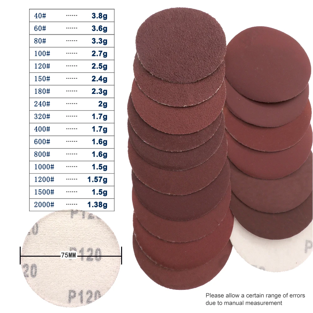 3 дюйма 75 мм оксид алюминия сухой 60 до 2000 решетки Крюк & Петля наждачная бумага