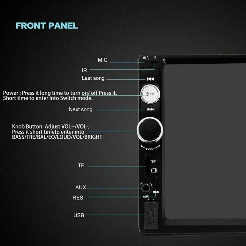 Полезные Советы: Пожалуйста, проверьте, находятся ли упаковка и продукт в хорошем состоянии при подписании. Если нет, пожалуйста, откажитесь подписывать посылку. При установке изделия Используйте оригинальный блок питания посылка. Если нет, продукт не будет работать. При подключении источника питания: 1. Подключите желтый провод к положительному полюсу автомобильного аккумулятора. В противном случае товар будет сброшен при каждом включении, и использование настройки не может быть сохранено. 2. Подключите красный провод к положительному полюсу ACC вместо положительного полюса аккумулятора автомобиля, в противном случае автомобиль погаснет и Автомобильный плеер все еще работает, и аккумулятор автомобиля будет разряжен. При использовании функции 1 защитную пленку лучше снять. Зеркальная связь: Поддержка зеркальной связи телефона Android, через оригинальный USB-кабель телефона может синхронизироваться с бортовым экраном, реализовать двустороннее управление 2. Встроенный Bluetooth с A2DP/звонки в режиме громкой связи/воспроизведение музыки/скачивание телефонных книг 3. Камера заднего вида: Поддержка входа камеры заднего вида, Видео можно просматривать на экране MP5 через камеру заднего вида при движении задним ходом автомобиля 4. Управление рулем: быстрое переключение функций, которые вы хотите, с помощью руля вашего автомобиля 5. Высококачественное цифровое стерео FM-радио, автоматический режим поиска каналов, полуавтоматический и точный способ настройки. Слушайте музыку, новости и информацию о трафике в любом месте и наслаждайтесь воспроизведением 6,u диска/AUX: Поддержка U-диска для воспроизведения, вам нужно только вставить U-диск в интерфейс машины для воспроизведения музыки Поддержка внешнего вытягивания AUX (штекер) вход аудио 7.TF-карты функция: Поддержка большой памяти TF-карты, Вы можете скачать музыку или фильмы, играть на данном блоке 8. Цветные настройки подсветки, вы можете выбрать свой любимый цвет в меню настройки Украсьте свой автомобиль спичками 9.разнообразие звуковых эффектов эквалайзера выбор сцены 10. Функция отключения питания, звуковое состояние музыки или музыки во время отключения памяти 11,7 ''HD сенсорный экран: Он обеспечивает мгновенное воспроизведение видео и более удобную работу 12. Поддержка USB-зарядки телефона: не беспокойтесь о том, что ваш телефон снова разрядится. Подробная информация система: WINCE Чипсет: C200S Размер экрана: 7 ''Разрешение экрана: 800*480 зеркальная ссылка: поддержка Android/IOS радио Диапазон: FM Радио чип: QN8035 Выходная мощность: 60 Вт Bluetooth Название: Автомобильный BT Рабочая температура:-10 ℃-60 ℃ рулевое колесо Функция управления: Поддержка усилителя мощности чип: TDA7388 радиочастота: 87,5-108 МГц Wifi: не поддержка GPS: не поддержка USB версия: 2,0 автожурнал изменение: не поддерживает аудио формат: формат видео MP3/WMA/WAV/APE/FLAC: RM/RMVB/AVI/MP4/MKV/3GP формат изображений: JPG язык: английский/китайский/испанский/португальский/русский/итальянский/немецкий/французский/Турецкий/Чешский/Польский/Тайский продукт в комплекте 1 Автомобильный MP5-плеер 1 силовой кабель 1 кабель динамика 1 пульт дистанционного управления управление 1 x Руководство пользователя