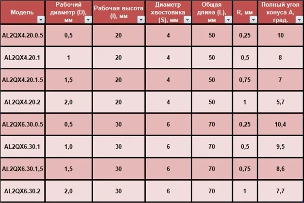 обработки. Благодаря форме конуса, фрезы имеют высокую прочность при маленьком